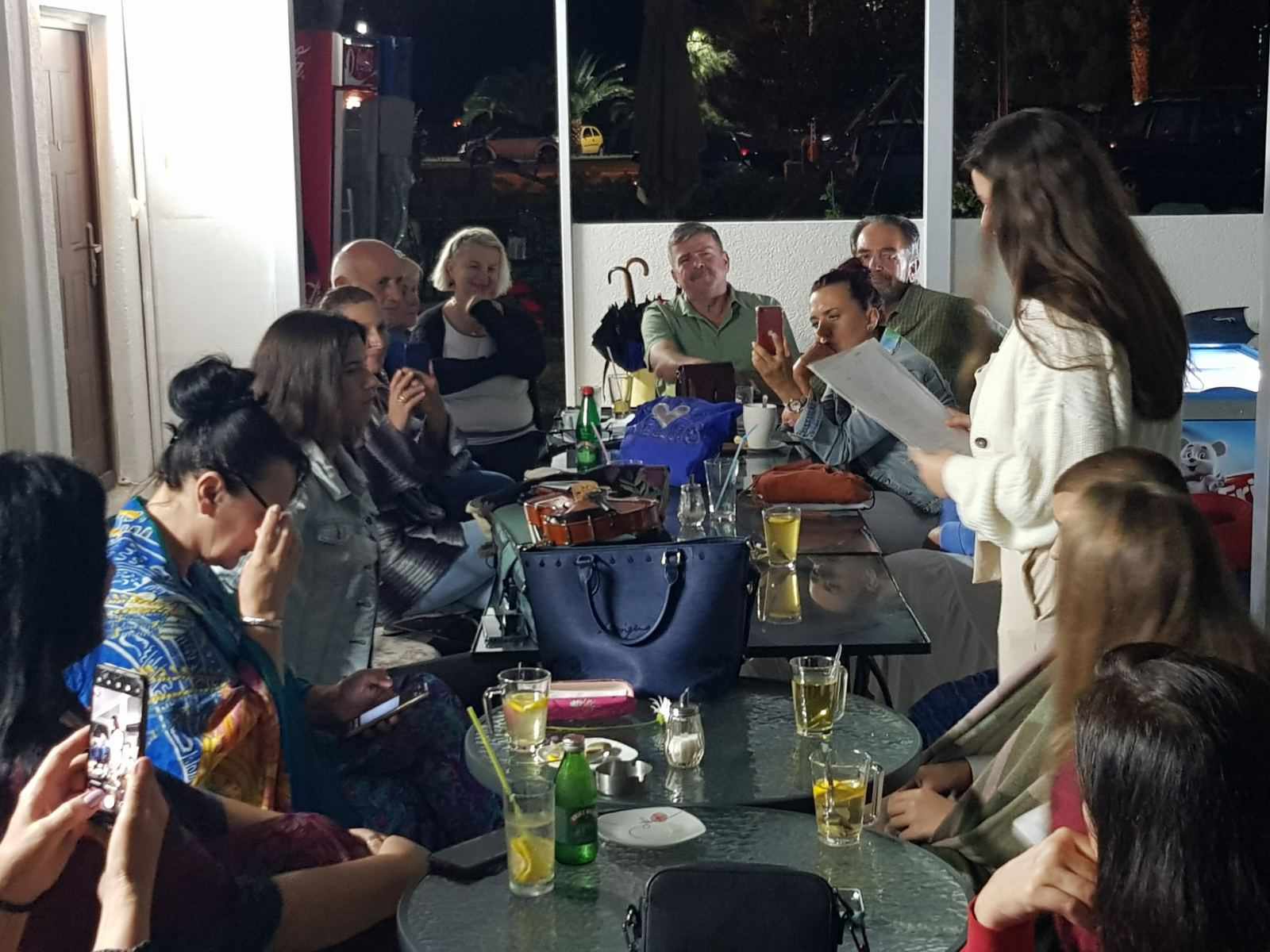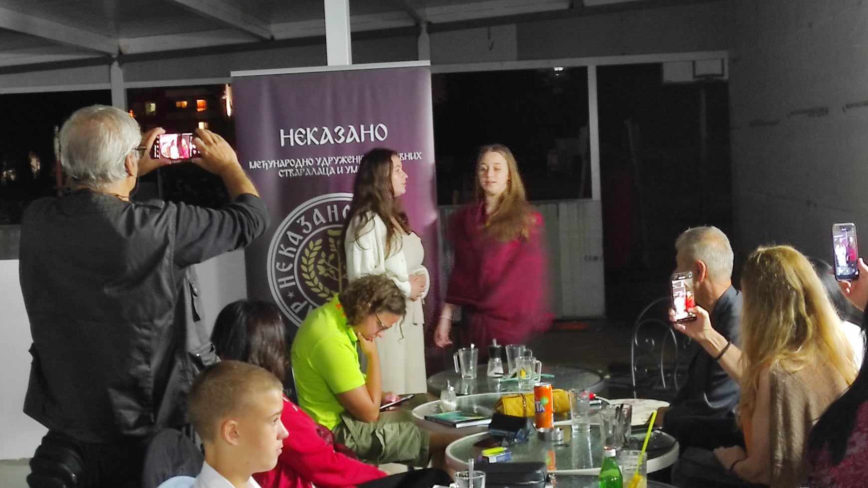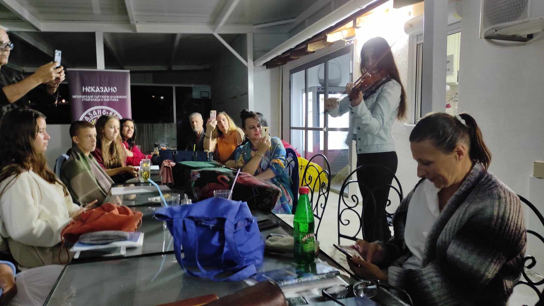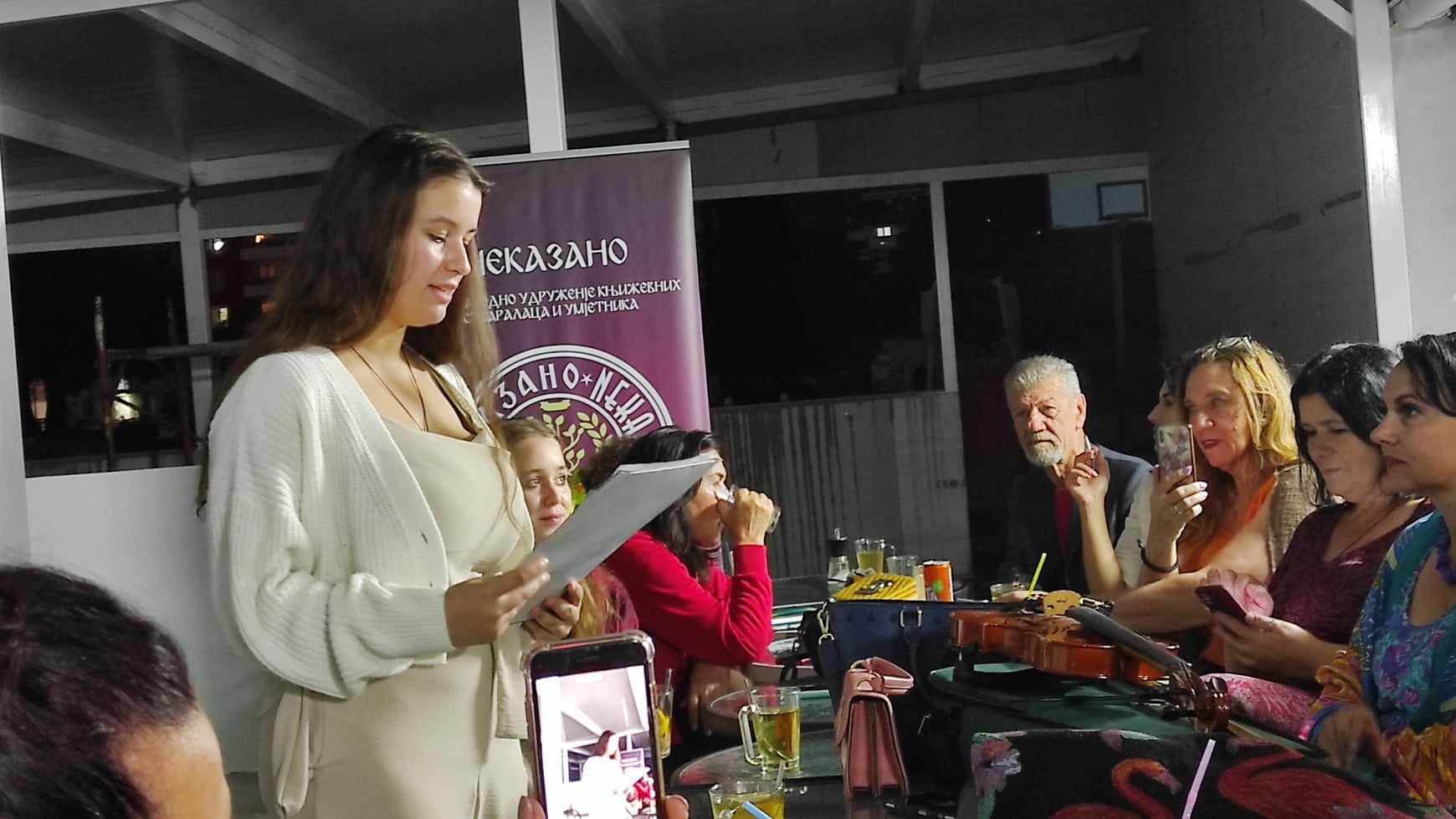 U nastavku večeri prisutni su govorili po nekoliko svojih pjesama a bliznakinje Smirna i Bojana Radonjić su svojim divnim glasom i izvođenjem etno pjesama uljepšale su ovo zbilja lijepo i emotivno veče. Mlada Hristina Knežević izvodeći par kompozicija na svojoj violini upotpunila je pjesmu bliznakinja dok je Vesna Lazović, umjetnica iz Budve otpjevala nekoliko svojih, kao i izvornih pjesama, na opšte zadovoljstvo prisutnih a i brat bliznakinja Strahinja Radonjić obradovao je prisutne izvodeći skoro profesionalno svojevrstan perfomans govoreći „A Bog, kao Bog, samo ćuti i gleda“ od Matije Bećkovića.