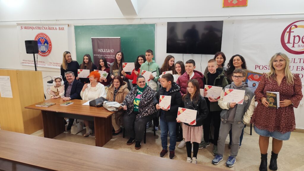 Međunarodno udruženje književnih stvaralaca i umjetnika Nekazano – Bar, u saradnji sa JU Srednjom stručnom školom Bar, Fakultetom za poslovnu ekonomiju i pravo Bar i knjižarom „Miral“, upriličilo je promociju najuspješnijih literarnih i likovnih radova učenika osnovnih škola Bara, pristiglih za knjigu „Baru na dar 2“.