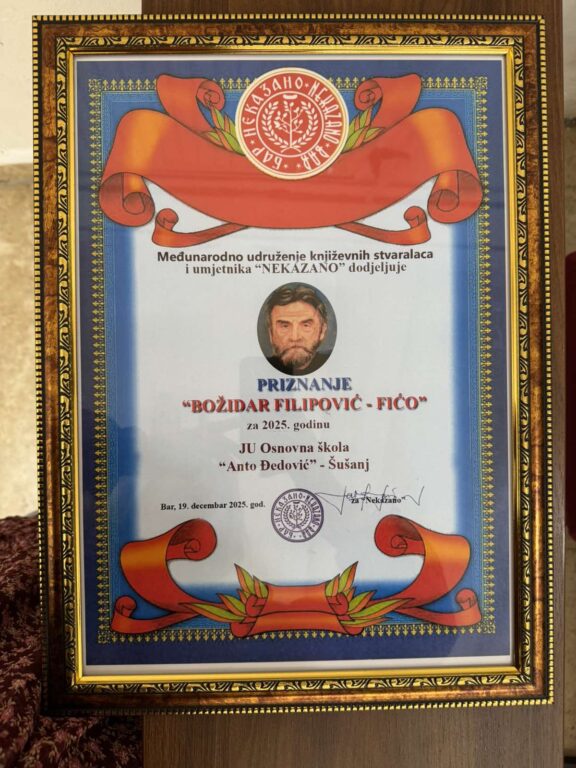 Odlukom Upravnog odbora, ovogodišnje priznanje dodijeljeno je JU Osnovnoj školi „Anto Đedović“ iz Šušnja, zbog izuzetnog doprinosa projektu i najvećeg broja kvalitetno pristiglih radova. Nagradu je u ime škole primila profesorica Anisa Đokić, uz riječi zahvalnosti i snažan aplauz prisutnih.