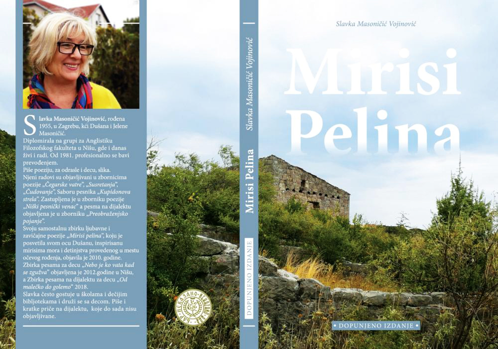 Slavka Vojinović, rođena 24.11.1955, u Zagrebu. Diplomirala na grupi za Anglistiku Filozofskog fakulteta u Nišu. Od 1981. profesionalno se bavi prevođenjem. Pesme su joj objavljivane u Zborniku Čegarske vatre, zastupljena je u Antologiji niških pesnika, saboru pesnika Kupidonova strela. Samostalno su objavljene njene tri zbirke pesama: Mirisi pelina, čije je ovo drugo dopunjeno izdanje, u kojoj je sadržana ljubavna i zavičajna poezija, Zbirka poezije za decu „Nebo je ko vata kad se zgužva” i zbirka poezije za decu na dijalektu „Od malečko do golemo”.