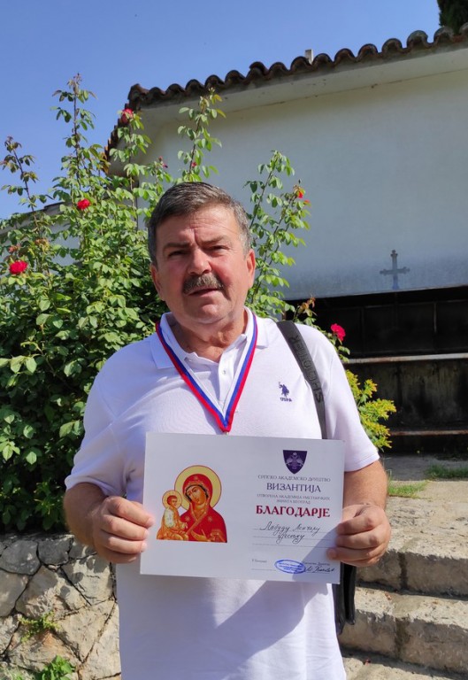 Ujedno ispred Srpskog akademskog društva Vizantija, otvorena akademija umetničkih zanata, iz Beograda, Art direktor Milutin Ranković uručio je Blagodarje pomenute akademije Labudu N. Lončaru predsjedniku Međunarodnmog udruženja književnih stvaralaca i umjetnika Nekazano.