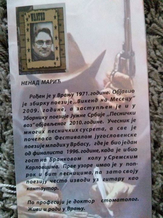 Nenad Marić u slobodno vreme je umetnik na gitari i pisanju pesama, uporedo radeci u belom mantilu kao doktor. Jedan od onih doktora zbog kojih želite da vas zaboli zub ili da ne zaspite uz njegovu zbirku pesama.
