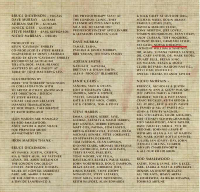 Ali, to nije sve. Naime, Mejdeni su u Beograd došli, između ostalog, kako bi promovisali i novi, 17. studijski album, „Senjutsu“, a na omotu se našlo i ime verovatno najpopularnijeg Srbina na svetu, Novaka Đokovića.