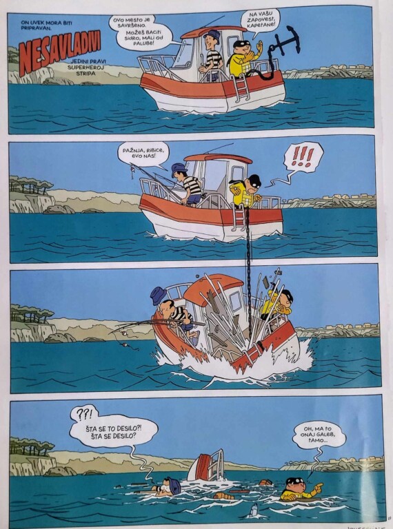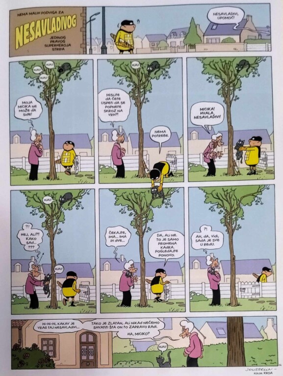 – Nesavladivi… u originalu l‘ Imbattable, engl. Mr. Invincible, nem. (der) Unschlagbar… Autor mu je pružio moći koje potiču od poigravanja samim izražajnim sredstvima stripa – u suštini, on može da prelazi iz jednog stripovskog polja u drugo, prevaljujući po potrebi i veće razdaljine između dva kadra, što je interesantan vid manipulacije prostorom, ali i vremenom! Jer… On zapravo svojim potezom iz prethodnog trenutka može da utiče na slučaj koji će se, ovaj, neće se dogoditi u bliskoj budućnosti, što pruža svojevrsnu metafizičku i metastripovsku dimenziju ovim zbivanjima! I, sad bi mogla barem u nekim iskricsma da nam se u roju jave pitanja i misli sa pojmovima: predvideti, anticipirati, uticati na sudbinu (!?)… A otkud mu zapravo te moći? Da li njima raspolažu samo povlašćeni, ili svi kojima bi mogla da proradi određena svest, ili se jednostavno usude (Onda… ko ti brani?)… Ma može mu se – može se svakom kome autor, kao gospodar svog stvaralaštva, jednostavno dodeli određene atribute… No, važno da je moćno i da nam pruža dobru zabavu, sa interesantnim izazovima i za našu maštu i za našu percepciju.
