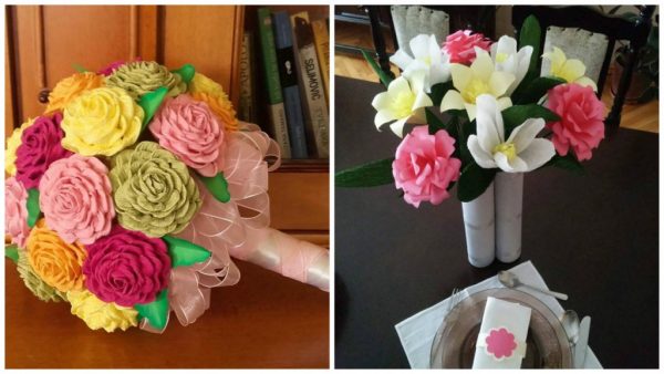 Fokusirala sam se pre svega na cvetne motive jer se najbolje uklapaju u ambijent, a dekoracija od cveća je nezaobilazni element na venčanjima, tako da je to negde bio logičan sledeći korak, izrada dekoracija za venčanja i proslave. Želeći da ti aranžmani budu kvalietetni počela sam na razne načine da se snalazim i dolazim do kvalitetnog papira i ostalih elemenata. Ima tu i satena, organdina, žice, akrila, cirkona, silikona, sve što koristim za izradu bidermajera, prstenčića za salvete, ikebanica i drugih aranžmana, neizostavni lenjir, olovka, makaze i naravno, ruke, ali možda najbitnije strpljenje.