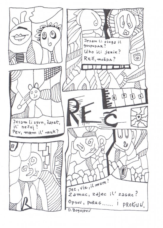Međutim, Bogojevićevi stripovi, rađeni na ovakvom predlošku, na prvi pogled – i narednih petnaest – ne govori ništa o ovim izrazima, o ovim novostvorenim bićima. Štaviše, ne govori puno toga inače. Ako se i nađe neko lice, čitalac se zapita da li je to bila Bogojevićeva namera ili akutni slučaj pareidolije. Zapita se i da li se uopšte Bogojević bavio stripom.