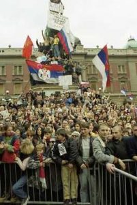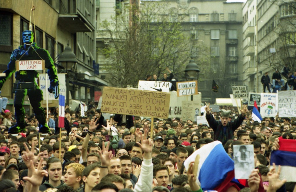 U centru Beograda su 3. aprila 1999. godine, bombardovana je zgrada „MUP-a”… Dan studenata u Beogradu bio je buran dan posle. Okupio se veliki broj mladih patriota na uglu Кnez Mihajlove i Čika Ljubine ulice. Beogradske rok i pop zvezde su napravile vrlo posećen koncert, koji je obilovao i drugim događanjima. Da bih napravio fotografiju celog skupa, popeo sam se na balkon četvrtog sprata, moje omiljene radnje foto materijala. Vibracije hita „Praviš slona od sebe” su me dobro potresli na simsu, dok sam snimao.