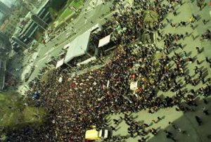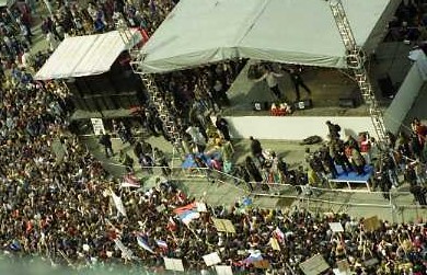 Graja je prekinula koncert, narod je od bine skoro sav sa snimateljima krenuo prema njima. U tom trenutku tišine Bora Đorđević, koji je stajao skoro na ivici bine držeći maketu Nevidljivog, prilazi napred ka mikrofonu i lomi maketu Noćnog jastreba o koleno. Dalje je nastavio izvođenjem svojih najvećih hitova „Avionu slomiću ti krila i „Pogledaj svoj dom anđele” i vratio narod ispred bine.