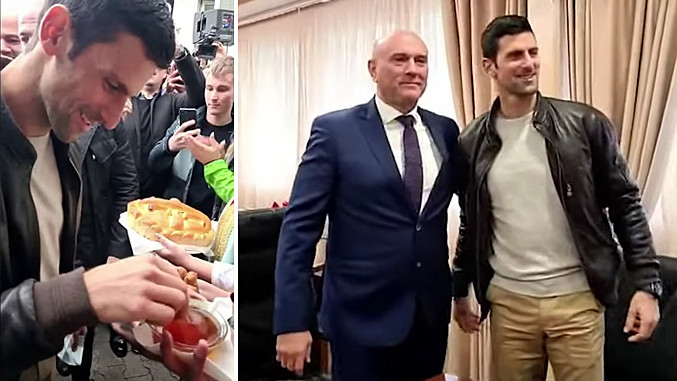 Novak se pozdravio s okupljenim obožavateljima, probao priganice s medom i ušao u zgradu opštine gde ga je dočekao Carević.