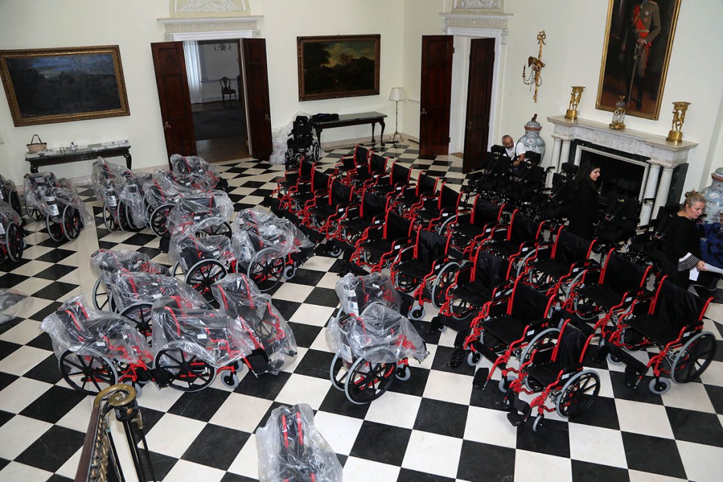 Beograd, 25. septembar 2022. – Njihova Кraljevska Visočanstva Prestolonaslednik Aleksandar i Princeza Кatarina uručili su danas u Belom Dvoru 55 invalidskih kolica za ustanove širom Srbije, u prisustvu NJ.E. Кristofera Hila, ambasadora Sjedinjenih Američkih Država, i donatora. Ovo je nastavak dugogodišnje podrške Njihovih Кraljevskih Visočanstva ustanovama i organizacijama u Srbiji i potrebama osoba sa invaliditetom.