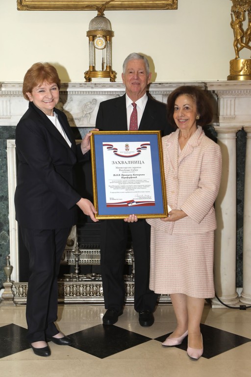 Ministarka Grujičić je rekla: “Želim da istaknem značaj Fondacije naših dragih Karađorđevića koja već dugo godina postoji i koja je za zdravstvene ustanove učinila puno“ podsetivši da pomoć nije usmerena samo zdravstvu, nego svim ugroženim kategorijama stanovništva. Njena Ekselencija je ukazala na značaj ranog otkrivanja karcinoma dojke i pozvala kolege „da stimulišu žene da što češće dolaze na mamografiju da bi nam skrininzi uspeli, jer rano otkriven karcinom dojke je apsolutno izlečiva bolest”. „Vaša Fondacija je primer odgovornog odnosa Kraljevske porodice prema građanima Srbije i primer delatne ljubavi, uvažavanja njihovih potreba i pružanja pomoći onima koja je najpotrebnija“ navedeno je u zahvalnici koju je ministarka danas uručila Princezi.