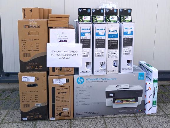 Novu kompjutersku opremu primili su Domovi za decu i omladinu u Somboru, Beloj Crkvi i Aleksincu, Dom za decu ometenu u razvoju u Subotici kao i Škola za osnovno i srednje obrazovanje u Kruševcu.