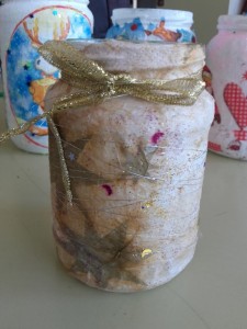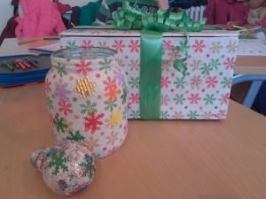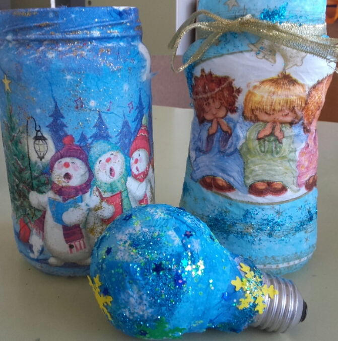 Roditelji čija deca idu u OŠ,,Aleksa Šantić“ u Beogradu se pripremaju za Novu godinu zajedno sa učiteljima i decom. Radionicu koju sam realizovala sa mojim učenicima je bila 23.12.2015. godine. Ukrašavali smo tegle, kutije. Pravili smo ukrase od sijalica i hamera. Naravno nijedna Novogodišnja radionica ne može da prođe bez čestitki. Uz priču i osmehe na licima je realizovana još jedna radionica.