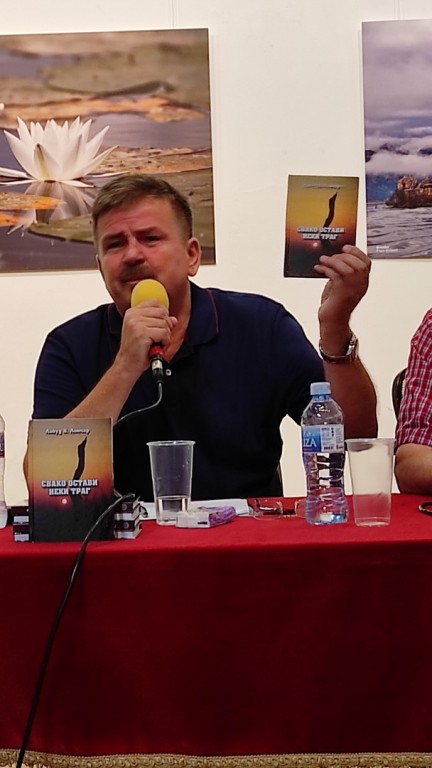Autor, Labud N. Lončar govoreći o knjizi „Svako ostavi neki trag“ naglasio je da je ovo jedna mala knjiga o velikim ljudima i velikim događajima koji su obeležili jedno burno vrijeme i naše živote. Posebno naglašavajući priče o Krstu Knežiću, Božidaru Filipoviću – Fiću, Zoranu Božoviću i „Ženama Bara koje kuvaju srcem“, kao i o Miodragu Banoviću koji je obalu Bara zasadio maslinama, palmama, borovima i drugim ukrasnim biljem i na taj način doprinio da naša obala i grad izgledaju ovako lijepo. Posebno je nadahnuto govorio o Knežiću i Filipoviću. Knežiću koji je iz Metkovića došao u Bar početkom raspada bivše SFRJ i doprinio razvoju ribolova tj. kočarenja. O druženju sa njim i vožnji sa njegovom „Laverdom“ i njegovom kočom „Labud“. Kao i podjeli ribe onima koji nijesu imali donvca da je kupe, pa čak i na uštrb svoje porodice. O njegovom životnom putu kada je sa dvanaest godina počeo ribariti na moru, kao i njegovom požrtvovanom odnosu prema porodici. Napominjući da je posle njegove smrti njegova supruga izvela sama bez ičije pomoći njihovu djecu na pravi put, ne birajući poslove. Svako dijete je završilo fakultet.