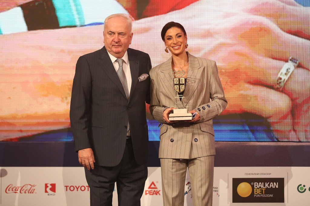 Titulu najuspešnije sportiskinje Srbije za 2023. godinu, po četvrti put, ponela je kraljica srpske atletike Ivana Španović. Ivana je prošle godine nanizala neverovatne uspehe, donela je našoj zemlji prvo zlato u istoriji svetskih šampionata na otvorenom, osvojila je bronzu na Evropskom prvenstvu u dvorani i peti put postala šampionka Dijamantske lige u skoku udalj. Trofej Ivani Španović dodelio je predsednik OKS, gospodin Božidar Maljković. „Goran i ja smo za 14 godina uspeli da oživimo mnogo snova i mislim da je ostalo još malo strpljenja u nama, da izdržimo još par meseci do Pariza, i da probamo da oživimo i naš najveći, zlatni san. Izuzetno mi je velika čast što sam ovde večeras četvrti put. Želim da se dubokom naklonim svim svojim sportskim prethodnicima koji su pronašli svoje mesto u hramu sporta, Olimpijskom komitetu Srbije. Oni su svojim sportskim i ljudskim veličinama i dostignućima ostavili i nama potvrdu da i mi možemo da sanjamo velike snove. Kako su Olimpijske igre samo par meseci od nas, želim lake rane junacima, nema lakih pobeda, ali ima velikih bitki“, izjavila je naša atletska heroina Ivana Španović.