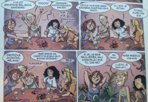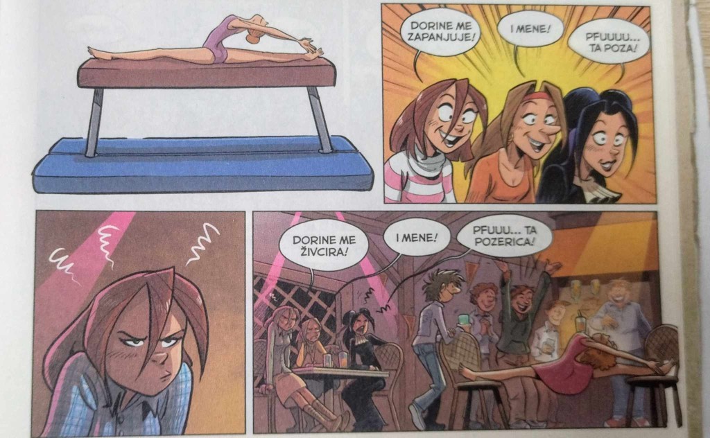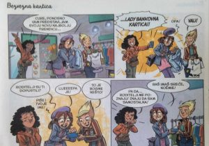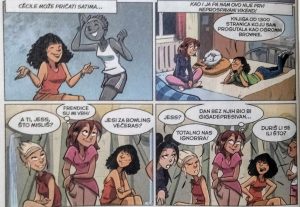 (Cazenove), odnosno njegov doprinos svetu stripa kao scenariste. Udruženo sa crtačem F. Fenekom (Philippe Fenech – vuče malo na izgovor Feneš, zar ne…?) pružio nam je serijal koji se u izdanju zagrebačkog Strip-agenta zove Moje frendice, što bi i odgovaro nekom familijarno skraćenom Mes Cop’s u originalu. Bez mnogo filozofiranja, reći ćemo da je u pitanju prilično pitko i grafički dosta ekspresivno ostvarenje, u očekivanom formatu jedna tabla – jedna epizoda, u kojem figuriraju tinejdžerke sa svojim zgodama i nezgodama na putu sazrevanja – škola, razonoda, ljubav, svakako rastući susreti sa elektronskim uređajima, pitanja lićnog imidža, samostalnosti i dr. Naravno, sve je praćeno živopisnim, nekad i malo preteranim uzbuđenjima, sitnijim i krupnijim nesporazumima i razmiricama, koje se u dogledno ipak lako premoste, kao što i priliči među prijateljima. U centru pažnje je Džesika (Jessica), a oko nje su prijateljice kojima je data zapažena vizuelna indivizualizacija, a naglašene su i neke njihove karakterne osobenosti, o čemu je i sama Džesika pričala. Prateći muški likovi nisu previše izraženi i uglavnom se pojavljuju kao privremeni partneri ili objekat interesovanja naših junakinja. Ponekad su, gle, i na smetnji!