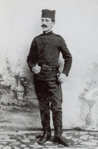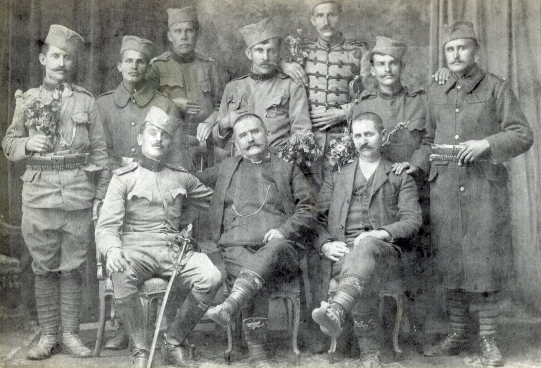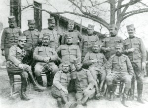 Sede (s leva na desno): Poručnik Drinjaković iz Takova, pomenuti Krsta Solujić i Dragomir Karaulić, kafedžija iz Gornjeg Milanovca