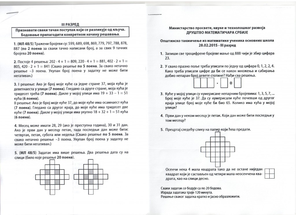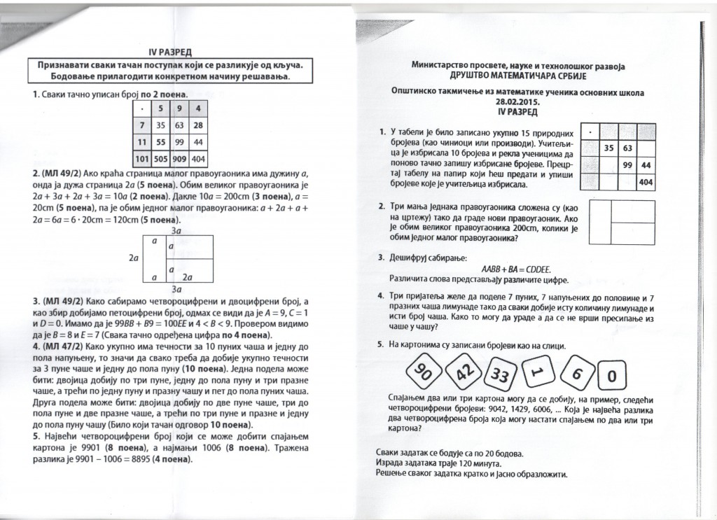 foto: classroomhives.org feb 28, 2015 Opštinsko takmičenje iz matematike 2014 -15. III i IV razred ključne rečičetvrti razredmatematikaopštinsko takmičenje iz matematiketreći razredzadaci FacebookTwitterEmailViberReddItWhatsAppTelegramPrintPinterestTumblrLinkedinMixVKDiggLINENaver Facebook Prethodni tekstOpštinsko takmičenje iz matematike 2014 -15. V, VI, VII i VIII razredSledeći tekstHUMANOST MUZIČKO POETSKOG KONCERTA „TAMBURICA SREM ORCHESTRA“ Prvoslavka MarkovićPrvoslavka Marković smatra da je obrazovanje jedan od načina menjanja sveta. Veruje u magičnu moć brojeva.Za nju važi Pitagorina misao: „Ne troši mnogo reči da kažeš malo, već malo da kažeš mnogo“. PROČITAJTE! Obrazovanje Srpski đaci doneli četiri medalje sa informatičke olimpijade u Bukureštu Zoran Todorović - dec 5, 2025 Obrazovanje OŠ ,,Dušan Jerković“ iz Inđije pobednik sedmog TreninGO izazova ,,Trčim za školu“! Zoran Todorović - dec 4, 2025 Kultura „Slova i životinje iz Miroslavljevog jevanđelja“ – dragocenost bliža osnovcima i predškolcima Zoran Todorović - avg 13, 2025 Otvorena vrata Dr Branimir Nestorović, načelnik pulmologije u Tiršovoj o lečenju astme, alergijama i ishrani Zoran Todorović - maj 10, 2017 Otvorena vrata Prestanak članstva u Savetu roditelja Jovanka Ignjatović - apr 1, 2014 Magazin Savet: Produžite život svom donjem rublju Bojana Pudar - maj 10, 2015 Mesečina Fotografija dana Marko Marković - avg 3, 2014 Mesečina Mladeži Zdravka Babić - feb 7, 2015 Otvorena vrata To se ne zaboravlja Zoran Todorović - jul 3, 2014 Zanimljivosti Da li ste znali: Grašak Marija Pašalić - jul 7, 2019 Atelje Atelje Keti Radevske Keti Radevska - apr 24, 2019 Mesečina Oran i Anja, 3. deo: Tebe nema Zoran Todorović - dec 13, 2024 Mesečina Vjerovanje – Branka Vojinović Jegdić Branka Vojinović Jegdić - nov 22, 2017 Otvorena vrata Likovni rad dana: Jesen Jovanka Ignjatović - feb 11, 2016 Satatatira Dnevna doza aforizma Mirjana Đapo - sep 19, 2017