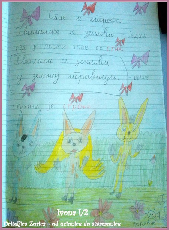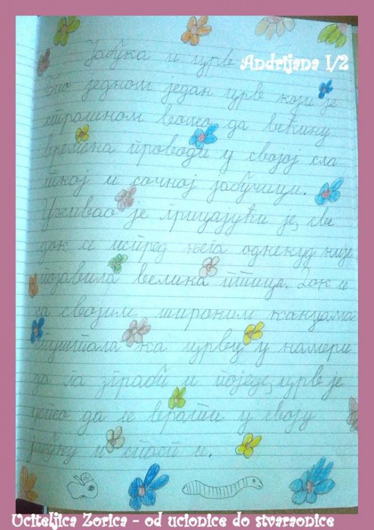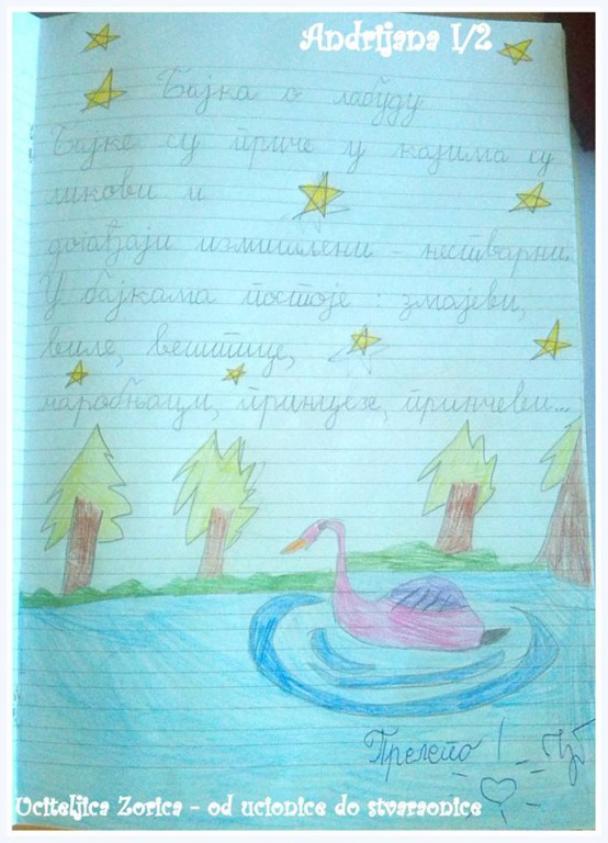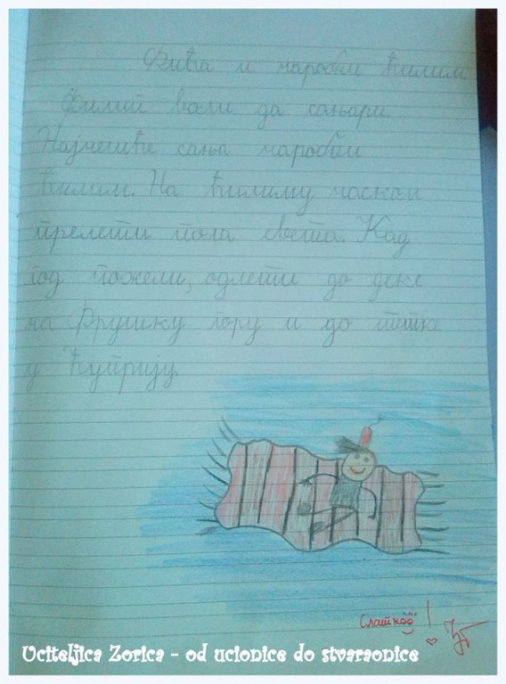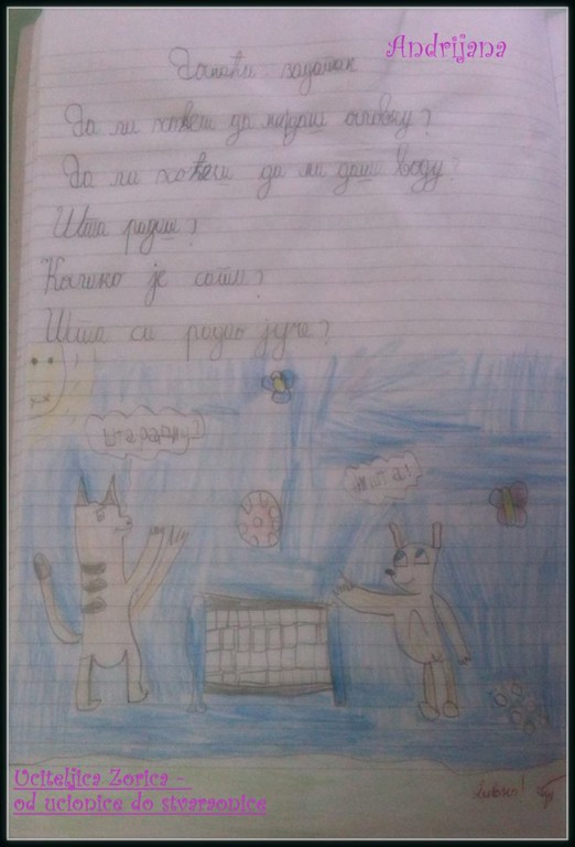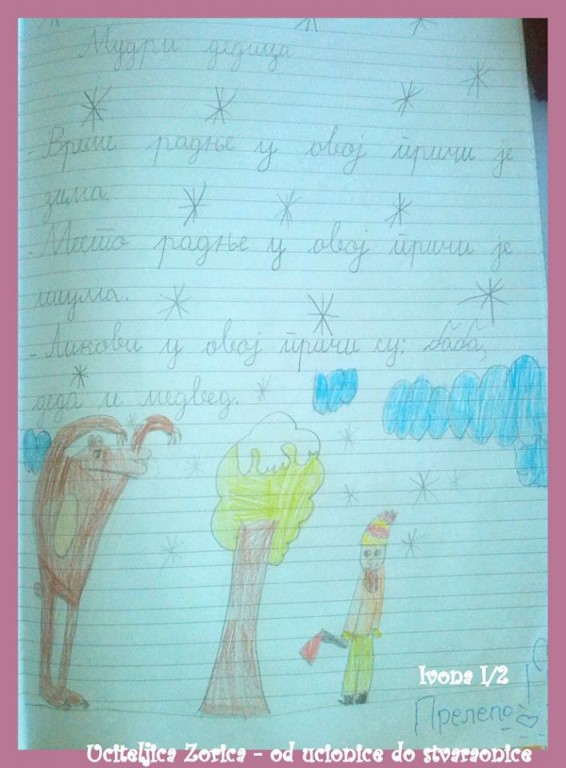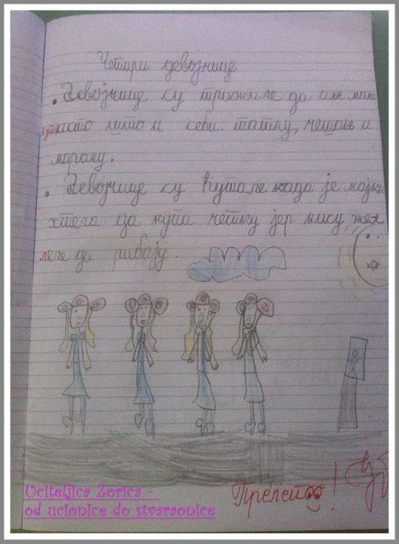 Moji đaci veoma su talentovani. Sve odrade na časovima a poneki, najbrži, odrade i domaći. Ima još puno radova, ovo su tek neki primeri. Uživam dok pregledam sveske.