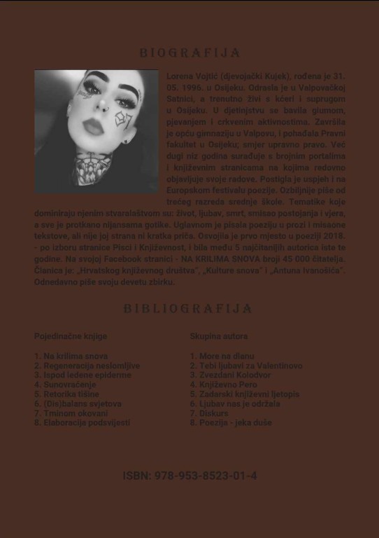 Književnost, a posebno poezija je nešto poput neba, bez granica. Toliko toga u njoj bude izrečenog, a opet i neizrečenog. S puno osobnosti i čestih konflikata sa samom sobom spisateljica Lorena ne odstupa od svog stila pisanja i tematika.