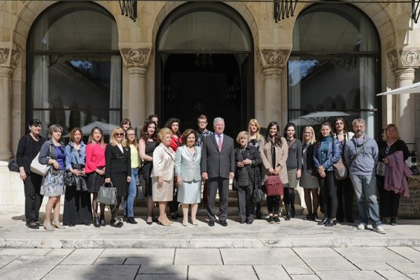 Beograd, 19. april 2018 – Njihova Kraljevska Visočanstva Prestolonaslednik Aleksandar i Princeza Katarina otvorili su turističku sezonu 2018. i pozvali sve zainteresovane da u periodu od 20. aprila do 31. oktobra posete dvorski kompleks na Dedinju. Predstavnici medija koji su se pridružili prvoj turi kroz dvorove imali su priliku da se posluže kafom iz široke palete proizvoda kompanije „Bean and Leaf“. Uz pratnju profesionalnih turističkih vodiča, turisti imaju priliku da obiđu dvorski park, Kraljevski dvor, Beli dvor i dvorsku crkvu Svetog Andreja Prvozvanog, kako bi se u prijatnoj jednoiposatnoj šetnji upoznali sa istorijom, umetnošću i kulturom kojima naša zemlja može da se ponosi. Posetioci će u okviru tura imati priliku i da se sretnu i pozdrave sa Prestolonaslednikom i Princezom kada god su prisutni. „Zadovoljstvo mi je što imamo priliku da otvorimo još jednu turističku sezonu i što će naši građani, kao i svi turisti, i ove godine uživati u obilascima dvorova. Istorija i uspomene dvorskog kompleksa su nepresušne i veoma je važno da ih prenesemo na mlade naraštaje i edukujemo ih. Nažalost, čest je slučaj da naši građani nisu informisani o važnim umetničkim delima koja se ovde nalaze, a turističke ture su odlična prilika da ih vide uživo i nauče nešto novo“, istakao je Prestolonaslednik Aleksandar. Turistička organizacija Beograda (TOB) organizovaće posete kraljevskim dvorovima svake srede, subote i nedelje počev od 22. aprila do 31. oktobra, sa organizovanim autobuskim prevozom. Polasci su sa turističkog stajališta na Trgu Nikole Pašića, u sledećim terminima: sredom od 9:30 (tura na engleskom jeziku), subotom od 9:30 na engleskom i 12:30 časova na srpskom jeziku i nedeljom od 9:30 i 12.30 časova na srpskom jeziku. Cena ulaznice je 650 dinara. Broj ljudi u grupi je ograničen na 50. Postoji i mogućnost organizacije grupnih poseta tokom radnih dana uz prethodnu najavu. Škole, studentske organizacije i penzionerska udruženja dvorove na Dedinju mogu posetiti u okviru grupnih poseta svakog radnog dana u terminima od 10 do 14 časova uz obaveznu najavu Kancelariji Nj.K.V. Prestolonaslednika Aleksandra na broj 011 306 4050 ili putem e-pošte: kancelarija@dvor.rs. Jedna grupa može da bude sačinjena od najmanje 15 i najviše 50 posetilaca. Vebsajt: www.dvor.rs. „Razgledanje Dvorskog kompleksa je jedan od najposećenijih turističkih programa koji se realizuje već 14 godina. Usled velikog interesovanja naših sugrađana kao i gostiju iz zemlje i inostranstva, ove godine smo odlučili da uz obilaske vikendom uvedemo dodatne termine“, rekao je g-din Miodrag Popović, v.d. direktora Turističke organizacije Beograda. Za sve informacije i rezervacije posetioci se mogu obratiti Turističkom informativnom centru u Beogradu, Knez Mihailova 56, telefon: 011 26 22 798, e-mail: bginfo.knezmihailova@