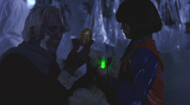 Od dva Hrona, krvolok u Hesusu umire istog trenutka kada njegova unuka Aurora (rimska boginja Aurora je paralela grčkoj boginji Eos odnosno Eoji; Eoja je unuka Hrona-titana), inače nema duž celog filma, na njegov pokušaj da joj okusi krv tiho izgovara „Deko.“ Ta njena reč, taj njen biblijski Logos koji „u početku beše“ vraća ljudskost u Hesusa, koji svoje puno ime izgovara triput zaredom nakon kršenja naprave u paramparčad. Paradoksalno, brzo nakon toga u Hesusu umire i Hron-božanstvo, jer je taj početak za njega bio početak biološkog kraja. Čovek koji je dostigao besmrtnost umire u svojoj postelji, u zagrljaju svoje porodice. I naravno, ovde dolazi i sumacija poruke prenete poslednjim rečima alhemičara s početka filma, koji je skončao život proboden u srce, biološki istog izgleda kao umirući Hesus. „Suo tempore“, alhemičar izgovara dok ispušta poslednji dah svog tristogodišnjeg života. „Sve u svoje vreme“. Srž o kojoj se načela rasprava u prethodnom pasusu, čovekovo skončavanje koje dolazi onda kada će doći, ni pre, ni kasnije. I svaki pokušaj remećenja tog postavljenog tempa donosi neprijatne rezultate. Iako Diter tvrdi da samo detaljno praćenje alhemičarevih uputstava može dovesti do toga da će naprava bezgrešno obesmrtiti čoveka, sam alhemičar na početku filma ukazuje upravo na suprotno: pusti prirodu da teče svojim tokom, nemoj da praviš perverziju od Hrona, ili postaješ onaj drugi Hron. Hesus je to razumeo, i poput svog novozavetnog i manje meksičkog imenjaka se odupreo iskušenju. Svoj vampirizam je rešio da okonča okončavanjem sebe, odbitkom trajanja nečega što ne bi smelo da traje.