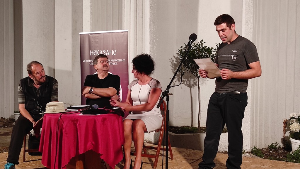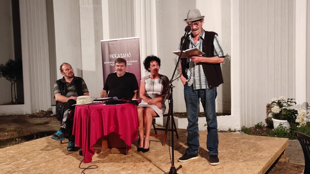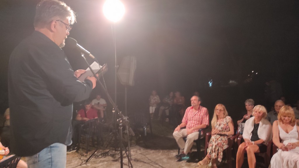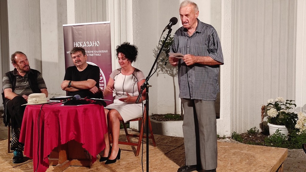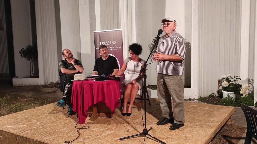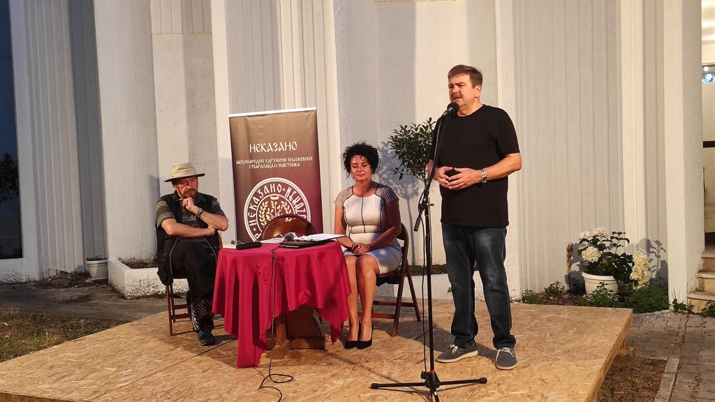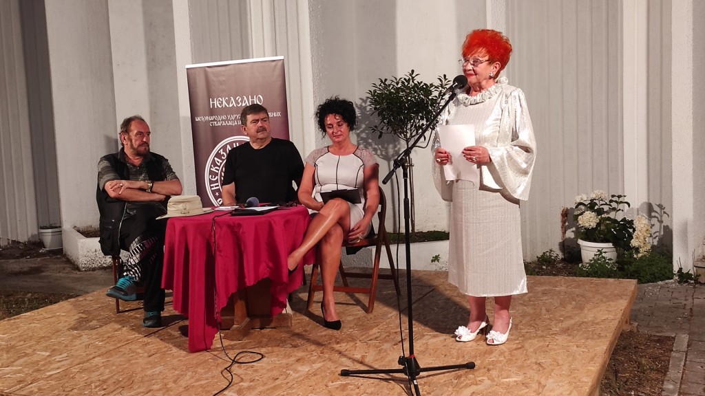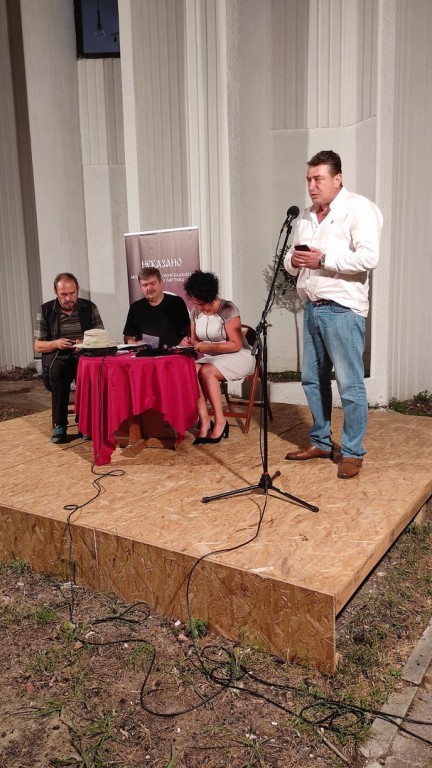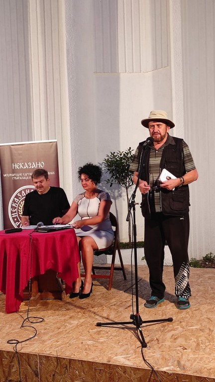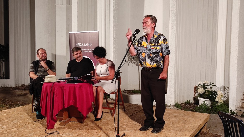 Otvarajući ovo zbilja lijepo veče, sa velikim brojem posjetilaca, Labud N. Lončar predsjednik udruženja Nekazano pozdravio je goste sledećim riječima:“Poštovani prijatelji i dragi gosti zahvaljujemo Vam se na posjeti u ovolikom broju. Ali prije svega dozvolite mi da se zahvalim TO Bar i KC Bar koji su nas podržali i koji su nam pomogli da se ova manifestacija održi. Sama manifestacija je nastala, od strane udruženaj Nekazano, sa željom da popunimo prazan hod u kulturnim dešavanjima Bara i Crne Gore a prije nego što počne naš čuveni i cijenjeni Barski ljetopis. Od do juče zapuštenom parka dobili smo kvalitetnu destinaciju i mjesto gdje se pogotovo u letnjim mjesecima mogu održavati sve književne manifestacije, pa čak i likovne, glumačke… U hladu borova i pirkanje vjetra sa mora mjesto daje izuzetan ugođaj i opuštenu atmosferu. Nadamo se da je ovo samo jedan mali i simboličan početak a u budućnosti ćemo proširiti ovu manifestaciju na mnogo većem nivou. Važno je da smo počeli a svaki je početak težakali. Gledajući Vas večeras ovako raspoložne i u ovolikom broju vidim da će ovo postati ozbiljna priča. Po ugledu na velike gradiove svijeta koji imaju ovakve i slične manifestacije, i mjesta, odlučili smo se za ovaj korak. Tome je nesebično pomogao Dr Milun Lutovac, upravnik galerije „Velimir A. Leković“ koji večeras nije sa nama i mi mu se ovim putem javno zahvaljujemo. VD direktora Ivan Kovač zbog svojih obaveza i obaveza ostalih radnika iz To Bar koji se večeras nalaze u Italiji, a koji rade na kulturnoj i turističkoj promociji našeg grada, nije prisutan ovoj večeri i ja Vam prenosim njegove lične pozdrave. Zahvaljujem se i sredstvima javnog informisanja koja prate naš rad a to su Radio Bar, Prva TV i RTV Herceg Novi. Portalima: Jedro, Feral, Barski portal, Pokazivač, Odgovor i Bar Info, kao i dnevnim novinama Dan i ostalim subjektima koji prate naš rad. Hvala prijatelju Veselinu Ćetkoviću koji toliko godina priređuje Dane Zagrađa i koji je ovdje večeras sa nama, sa svojim gostima iz Subotice, kako bi podržao naš rad. Pozdravljam i cijenjenu umjetnicu Milu Vorobevu, slikarku i pjesnikinju koja nam je u goste za ovu priliku doputovala iz daleke i prijateljske Rusije.