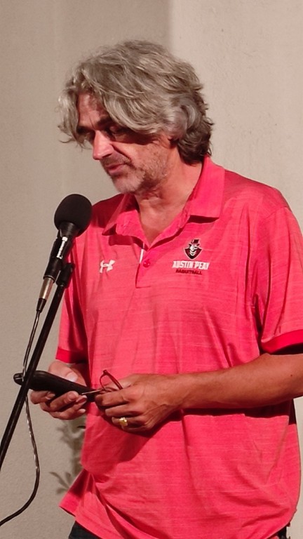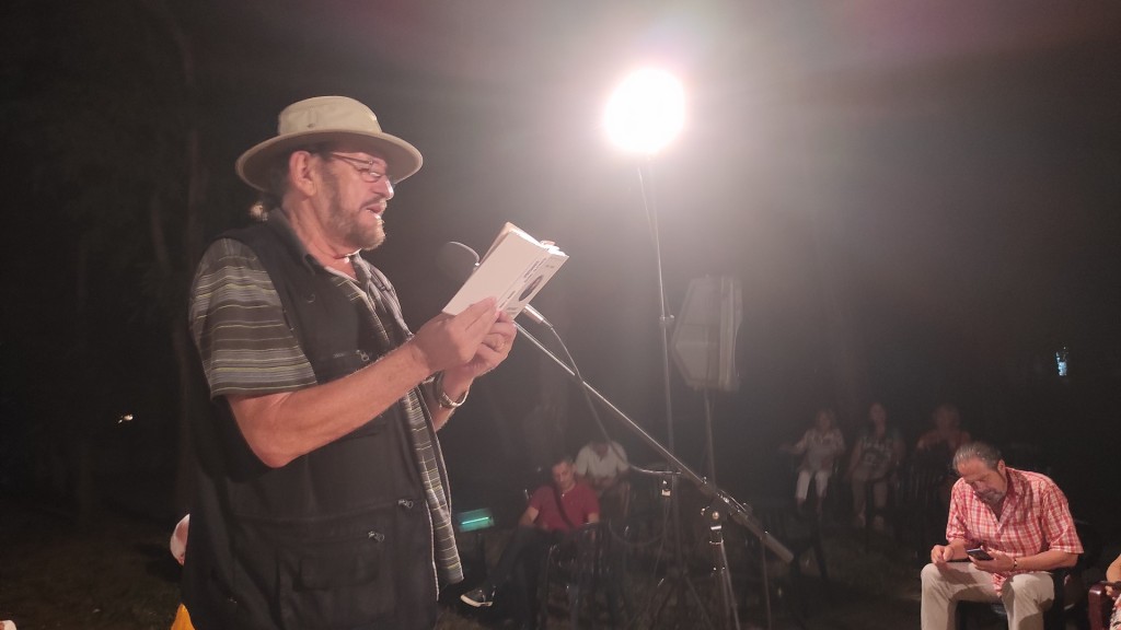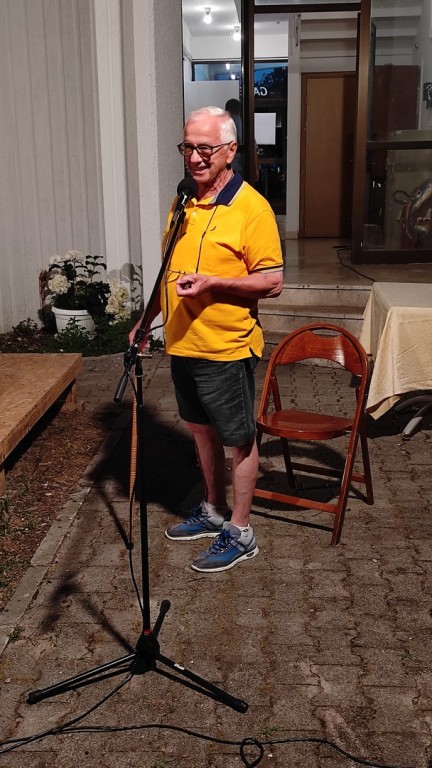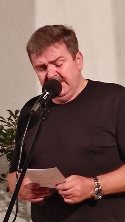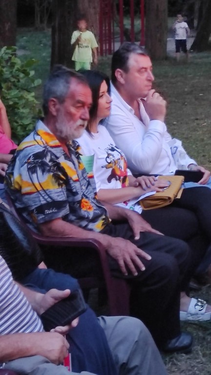 Dozvolite mi da u svoje i vaše ime pozovem pjesnika Ranka Radovića, počasnog člana Nekazano, našeg pjesnika koji živi i radi u Kanadi ali koji je i stanovnik Bara već dvadeset šest godina a koji je jedan od najcijenjenijih pjesnika današnjice da svojim riječima i pjesmama otvori ovaj Prvi park pjesnika u Baru!“.