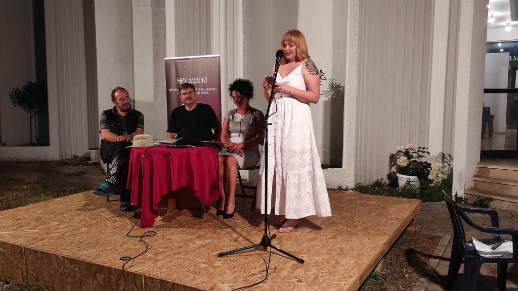 Tatjana V. Maras, koja se vratila sa rada iz Hrvatske ponovo se pridružila udruženju Nekazano i ove večeri se dokazala u ulozi moderatora.