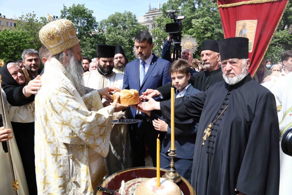 Nakon svete Liturgije patrijarh Porfirije je predvodio litiju oko hrama, a zatim je osveštao slavske darove koje su prineli kum slave ambasador Republike Srbije u Crnoj Gori dr Vladimir Božović, domaći slave predsednik GO Palilula g. Miroslav Ivanović sa saradnicima i članovima Veća Opštine.