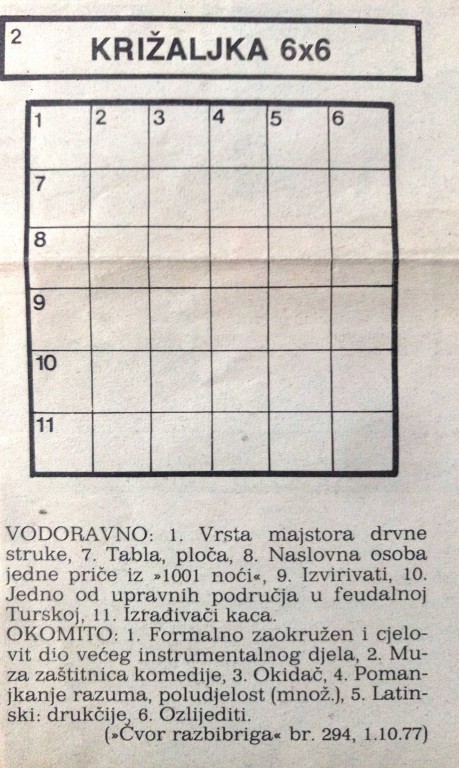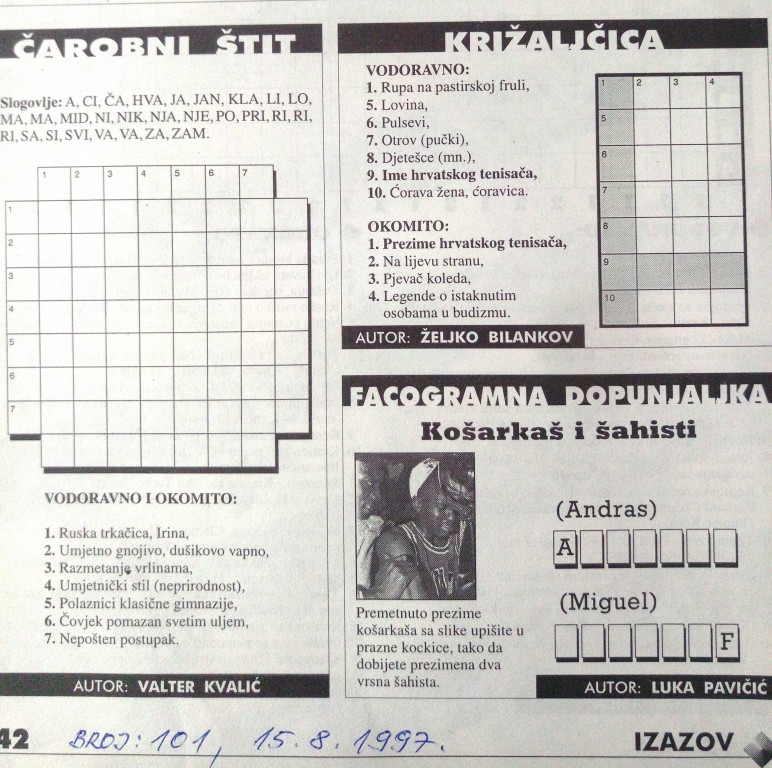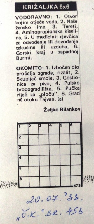 - USKA JEST (rješenje: SUTJESKA) – „Slobodna Dalmacija“ od 09.06.1991.g.