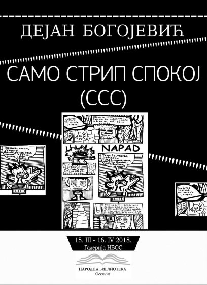 Povodom izložbe Dejana Bogojevića „Samo strip spokoj“ u galeriji Narodne biblioteke u Osečini, 15. mart — 16. april 2018.