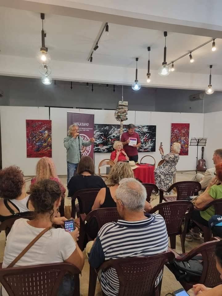 U nastavku dana, u galeriji “Velimir A. Leković” koja je bila pod postavkom umjetničkih slika dr Miluna Lutovca, održana je promocija dvije knjige. I to, knjiga poezije “Ružičasto sunce” bugarske autorke Dimane Ivanove koja na žalost nije mogla doputovati u Bar iz zdravstvenih razloga i knjige “Izabrane pjesme” Milice Honđo, bosanske pjesnikinje. Goste je u Galeriji dočekala Katarina Gazdić Ilić, kustos galerije i u pozdravnom govoru upoznala goste sa JU Kulturni centar Bar a posebno sa likovnom galerijom i trenutnom postavkom dr Lutovca. U prvom dijelu ove večeri promocju knjige “Ružičasto sunce” održala je pjesnikinja Safeta Osmičić, inače prevodilac ove knjige sa Bugarskog jezika. Prije svega izrazila je žaljenje zbog odsutnosti pjesnikinje Dimane a onda je govorila kako je nastalo ovo djelo ističući biografiju i stručne podatke odsutne autorice nakon čega je  prisutne goste upoznala sa prevednim pjesmama recitujući ih nadahnuto. Natalija Novaković, pjesnikinja iz Podgorice i ovaj put svojom pjevanjem etno pjesama, bez muzike, oduševila je prisutnu publiku.U drugom dijelu večeri pjesnikinja Milica Honđo upoznala je goste sa svojom knjigom “Izabrane pjesme” i sama govoreći svoje pjesme. Na molbu da objasni sudbinu svoga sina Harisa koji se često pominje u njenim pjesmama objasnila je da je njen sin Haris , kao i mnogi drugi sinovi bez obzira na nacionalnost žrvta prošlog građanskog rata koji je bijesnio na području bivše SFRJ. Haris je bio mladić, muzičar kao i mnogi njegovi vršnjaci koji su stradali na isti ili sličan način.