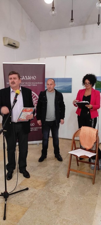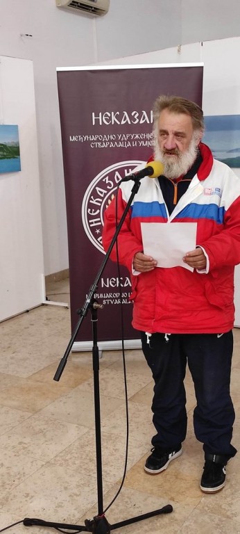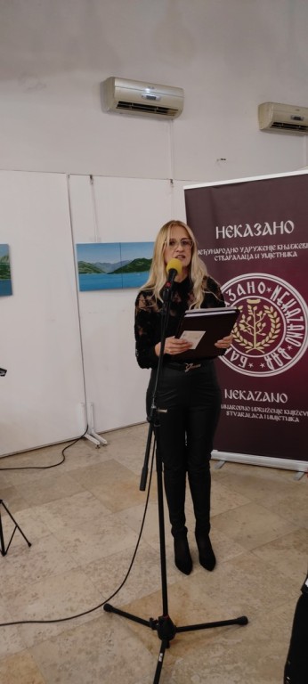 Katarina Gazdić Jelić je i ovom prilikom pozdravila goste dajući uvodnu riječ, istorijat i planove Udruženja likovnih umjetničkih stvaralaca Crne Gore napominjući da je večeras izloženo trideset osam radova sa različitim motivima i da oni predstavljaju jedinstven slikarski kolaž članova udruženja. Sanja Veličković je u ime ULUS CG Labud N. Lončaru poklonila sliku rad Vesne D. Filipović a Lončar je u ime Nekazano uručio Zahvalnicu ULUS CG u ime saradnje i doprinosu rada udruženja, ističući da je ovo samo kreativan, multimedijalni početak saradnje i nada se da će se ovakve večeri i promocije održati i u drugim gradovima Crne Gore, i šire, a za šta već postoji interesovanje.