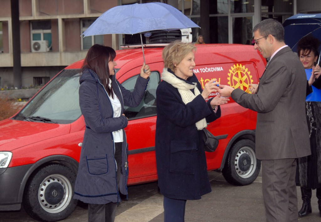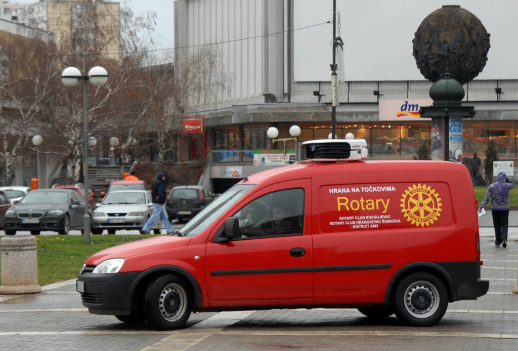 Specijalno vozilo namenjeno za distribuciju hrane na tockovima opel kombo termoizolovano, poklonili su rotarijanci grada Kragujevca Crvenom krstu Kragujevac. Ključeve vozila je predao predsednik Kluba Rotary International za 2016. godinu Marko Vujnović volonterki Milki Ignjatović, predstavnici Upravnog odbora Crvenog krsta.