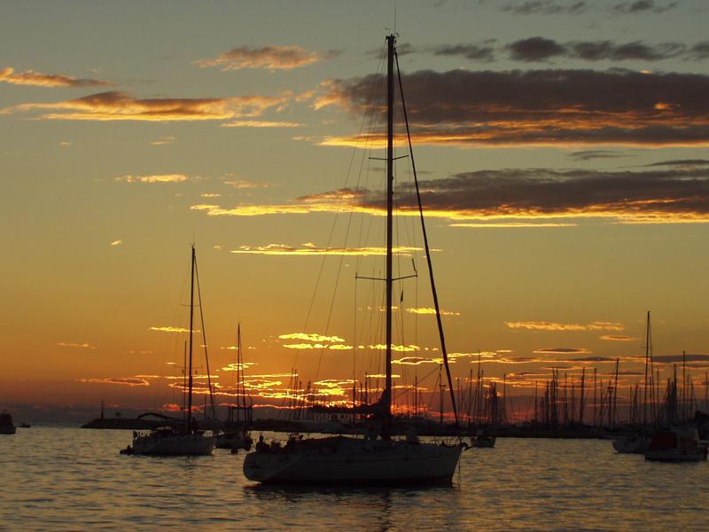 Boravila sam u Herceg Novom, na letovanju. Dan je bio kao i svi drugi: kupanje, zabavljanje, sunčanje, ispijanje hladnih sokova. Predveče, mama i ja smo se, u apartmanu, spremale za večernju šetnju. Izašle smo na rivu i videle divan prizor. Stajale smo pored marine i posmatrali ovu jako lepu sliku. Izgledalo je kao da su jahte napravile šare po suncu koje je, videvši se dopola, zalazilo iza obližnjeg brda. Sunce i deo neba bili su osenčeni nijansama roze i narandžaste boje. Dok smo gledale, sunce je klizilo nadole. Imala sam utisak da su sunčevi zraci milovali i pokretali brodove. Pučina se prelepo utopila u sliku sa morem i suncem. Kasnije su zraci koji su preostali, izgledali kao vatromet na nebu.