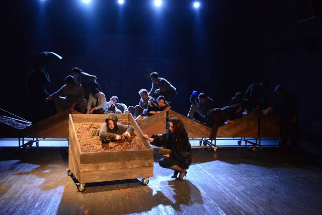 Polazeći od stvarnog događaja, da je majka otišla na njivu sa detetom, koje se nije vratilo sa njom, i ona nije znala da kaže šta je bilo s njim, Đorđević je zamislio mračnu priču, u kojoj ne samo da nema, do kraja, dečaka Slobodana, neko se i oni koji znaju gde su, u njoj izgube. To je zbog neprobojne tame, iz koje se ne može iskoračiti nikud, osim u metaforu gubljenja svega – dostojanstva, bliskosti, ljudskosti, života… Dragica, luda majka nestalog dečaka/ opasno luda majka glavne junakinje Marije/ Stanika, luda majka Draganova/ Petkana, vračara, tetka ludog Paradajza/ devojka ludog Dragana /strine ludog Slaviše, oca nestalog dečaka su po ovom principu poređane, jer su, sa umetničkim pokrićem, svoje junakinje uspele da prikažu kao žene od krvi i mesa, a ne samo emanacije ludila i promašenosti. Ono što se uslovno zove ludilom, u ovoj predstavi ima mnogo oblika, a u toj dijagnozi je samo jedno zajedničko – da tu ničeg prirodnog i normalnog, zdravog nema. Čiča Dragoljub, koji se mota po „Rubištu“, dodatno sapliće nesrećnike, a Čiča, ima ulogu da ga Marija, koju je silovao, kada mu je njen otac prodao, kao dete, za rakiju, udavi u kaci na kraju. Ova scena nije samo užasan akcenat, koji „Rubište“ vodi korak napred, ka crnoj jami, nego je, paradoksalno, i najjači simbol čitave te crne mise. Odatle nekako sviće – postaje jasniji i logičniji naš mrak. Relativna emocija /sve dobro je u „Rubištu“ relativno, a sve zlo apsolutno/ dolazi i iz scene kada mladi ljubavnik dolazi po Slavišu, oca nestalog deteta, pevajući folk ljubavnu pesmu. Slavišin vapaj za običnim pravom na izbor ledi krv – da li je zaista dotle došlo u kolektivnoj apokalipsi?! Antipod je patologija mladog Dragana, koji devojku koja ga voli emotivno ubija, bez razloga… Marija /izvrsna, uzbudljiva Milica Janevska/, vratila se u „Rubište“, zapravo, po svoju metaforičnu smrt. Vračara Petkana ne uspeva da joj da magiju da zatrudni, majka je okuje u brnjicu za medvede /otac, pijandura, joj je bio mečkar/ i otera iz kuće, iz susreta sa veselim paradajzom otkrije da je njena sudbina da sama završi u kafani, telefonski se odriče dragog i braka sa njim, presuđuje Čiči, koje je silovao…I ništa.Kraj.Mrak. Dragana Bošković, Večernje novosti