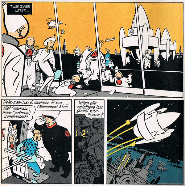 I umereni ljubitelji stripova bi mogli pomisliti: Ovakav stil crtanja jako podseća na Tintina! Sasvim je opravdano što se zapažaju sličnosti, uz opšte karakteristike manira ligne claire (po negde bi rekli i un style limpide), ovde možda još sofisticiranije i razrađenije nego kod Tintina – linije su (možda i malo upadljivo) jasne i neusiljene, oblici dovoljno precizni u okviru datog stila, bez naročitog nijansiranja između svetlih i tamnih površina; pogotovo su likovi – žive figure, pojednostavljene, ponekad sa elegantno izvijenim pokretima, dok je za zadnji plan i ambijentalne celine uloženo malo više truda, uz valjano poštovanje osnovnih načela perspektive i dr., ali ponekad je nedosledno i nepredvidivo koliko će se insistirati na pojedinostima (što će se očitovati i kod Fredija Lombara)