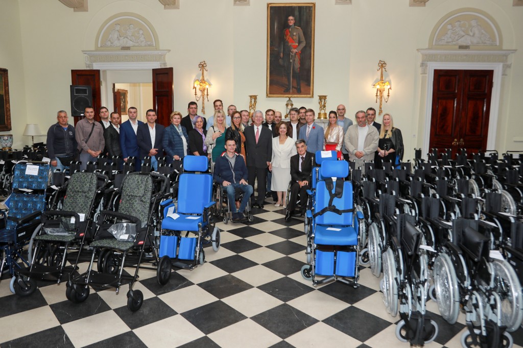 Beograd, 5. novembra 2019. – Nj.K.V. Prestolonaslednik Aleksandar i Princeza Katarina uručili su 125 invalidskih kolica za 10 ustanova širom Srbije – Specijalnu psihijatrijsku bolnicu „Kovin“ iz Kovina, Dom za decu sa invaliditetom „Kolevka“ u Subotici, Dom za decu i omladinu sa invaliditetom Veternik u Novom Sadu, Društvo za multiplu sklerozu u Beogradu, Kliniku za rehabilitaciju „Dr Miroslav Zotović“ u Beogradu, Rehabilitacioni centar Mladenovac u Beogradu, Specijalnu bolnicu za cerebralnu paralizu i razvojnu neurologiju u Beogradu, Dom za invalide u Doljevcu, Dom za invalide Zemun u Beogradu i Bolnicu Guča.