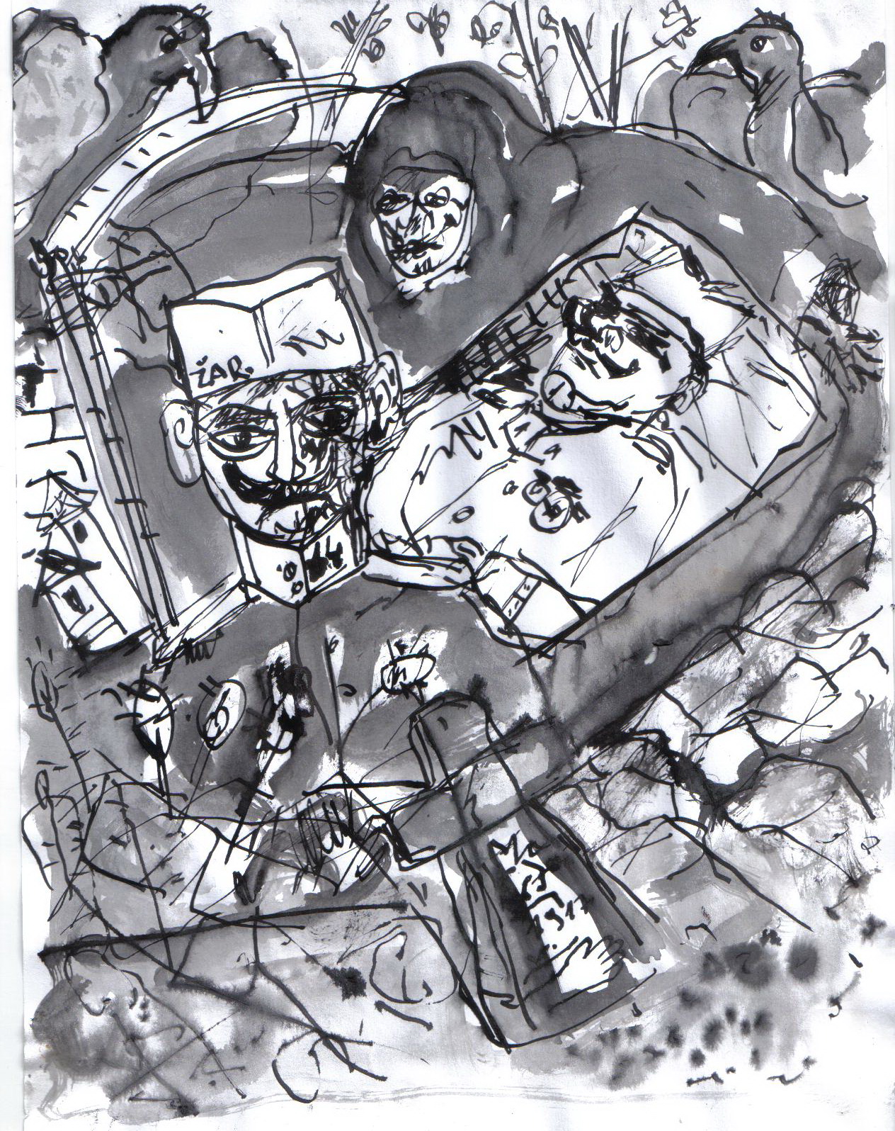 Poraženi vojnici pili su vino kraj dugog prašnjavog puta. Umor im je svetlucao u borama. Oči su im bile prazna ogledala u koje nije mogao da stane ceo taj dan i lišće starih jabuka ispod kojih su sedeli. Vojnici su uvek poražni samo im to niko nije rekao. Nedaleko od njih pevali su, urlali, pijani pobednici. Pobedili smo, mi smo bogovi – urlali su. U nedrima njihovih, od čekanja umornih, žena već su kucala srca dece poraženih. Sve je predugo trajalo. U jatim su letele ptice niz široko nebo. Jesen je počinjala. Zarasle u korov njive čekale su na obogaljene pobednike. Potok pun trulog ljudskog mesa crneo se u ranjenom danu.