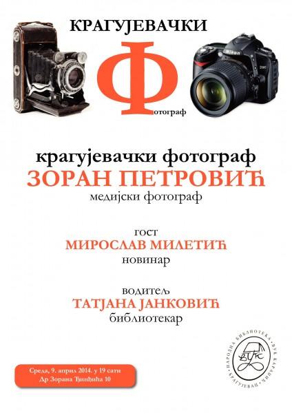 Projekcija fotografija poznatog kragujevačkog fotografa apr 8, 2014 Projekcija fotografija u Narodnoj biblioteci u Kragujevcu Pozivamo sve ljubitelje fotografije da se 9. aprila 2014. godine u Narodnoj biblioteci, sa početkom u 19h, družimo uz projekciju fotografija. Projekcija fotografija poznatog kragujevačkog fotografa ključne rečifotografNarodna bibliotekaprojekcija fotografijaZoran Petrović FacebookTwitterEmailViberReddItWhatsAppTelegramPrintPinterestTumblrLinkedinMixVKDiggLINENaver Facebook Prethodni tekstRecept: PanakotaSledeći tekstGaravi sokak Bojana PudarBojana Pudar veruje da "osmeh ne košta ništa, a znači mnogo. Ako nekada sretneš osobu koja više nema osmeh, budi velikodušan, pokloni joj svoj. Niko ne oseća takvu potrebu za osmehom, kao oni koji ne mogu da ga poklone drugima". PROČITAJTE! Magazin Kraljevska porodica Karađorđević proslavila krsnu slavu Zoran Todorović - dec 13, 2025 Knjige Lončar među najboljim pjesnicima planete: Objavljeni rezultati za 2025. Zoran Todorović - dec 13, 2025 Otvorena vrata Hiljade Božićnih paketa Lajflajn Čikaga za decu bez roditeljskog staranja stigli u Kraljevski dvor Zoran Todorović - dec 11, 2025 Satatatira Karikatura dana Nikola Dragaš - jan 31, 2019 Mesečina Sutra – Ana Magda Ana Magda - okt 11, 2016 Zanimljivosti Da li ste znali: Kavaljeri Marija Pašalić - dec 14, 2018 Kultura Dva Egzitova festivala u finalu trke za Najbolji evropski festival Zoran Todorović - dec 25, 2022 Mesečina Labud N. Lončar: Umiru leptiri Labud Lončar - mar 21, 2018 Magazin Recept: Bombice od palente Bojana Pudar - jun 19, 2014 Knjige Međunarodni književni konkurs poezije, proze, mudrosti i aforizama Helena Himel - dec 18, 2018 Muzika Mi plešemo – Prljavo kazalište_cover by mmcela Miša mmcela Acoustic - jun 22, 2018 Zanimljivosti Za miran san i dobar dan: Naruto 104. epizoda Đorđe Todorović - dec 3, 2015 Otvorena vrata Izložba učeničkih radova u OŠ „Radoje Domanović“ Kragujevac OŠ "Radoje Domanović" Kragujevac - jun 8, 2016 Vesti Legenda je otišla u legendu: Preminuo Boris Aranđelović Miloš Ignjatović - avg 27, 2015 Vesti Šesti kragujevački polumaraton i tradicionalna “Trka za srećnije detinjstvo“ Zoran Todorović - okt 5, 2018