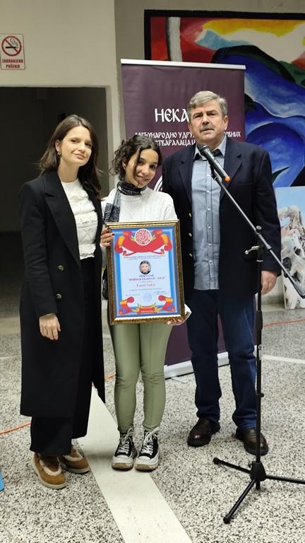 Lončar je zamolio, kćerku pokojnog Božidara Filipovića Fića, da uruči priznanje Enesi. Danica je to s radošću učinila, dok je aplauzom sa klupe podržavala njena sestra Maja. Vidno uzbuđena i prijatno iznenađena, Sukićka se zahvalila na uručenom priznanju, naglasivši da bi, kada bi ponovo birala izdavača, njen izbor svakako ponovo bio Nekazano.