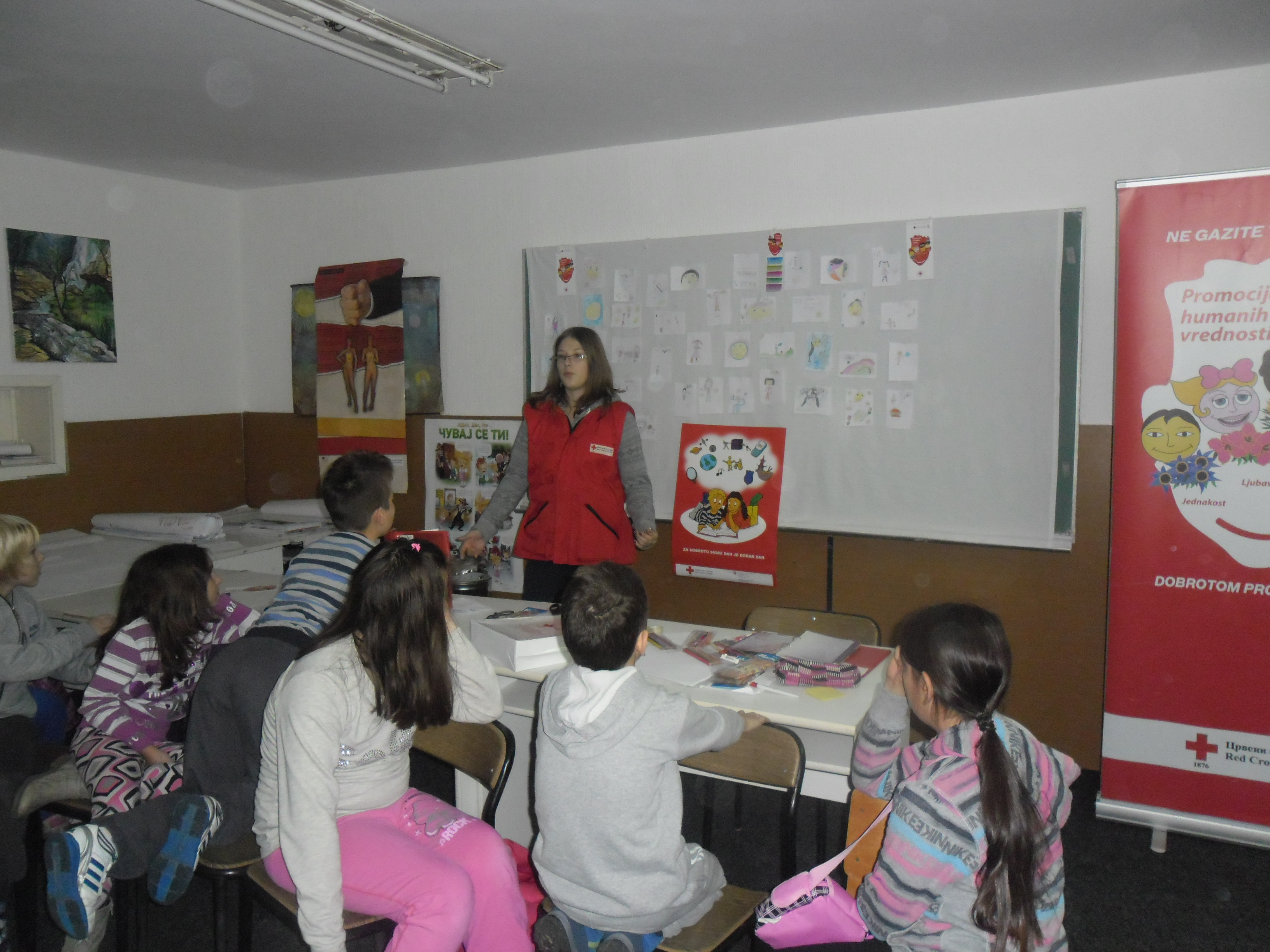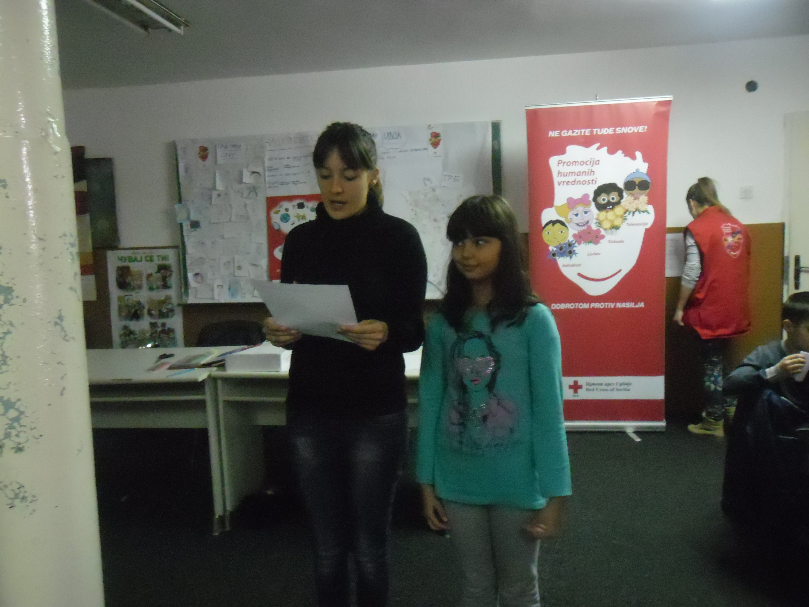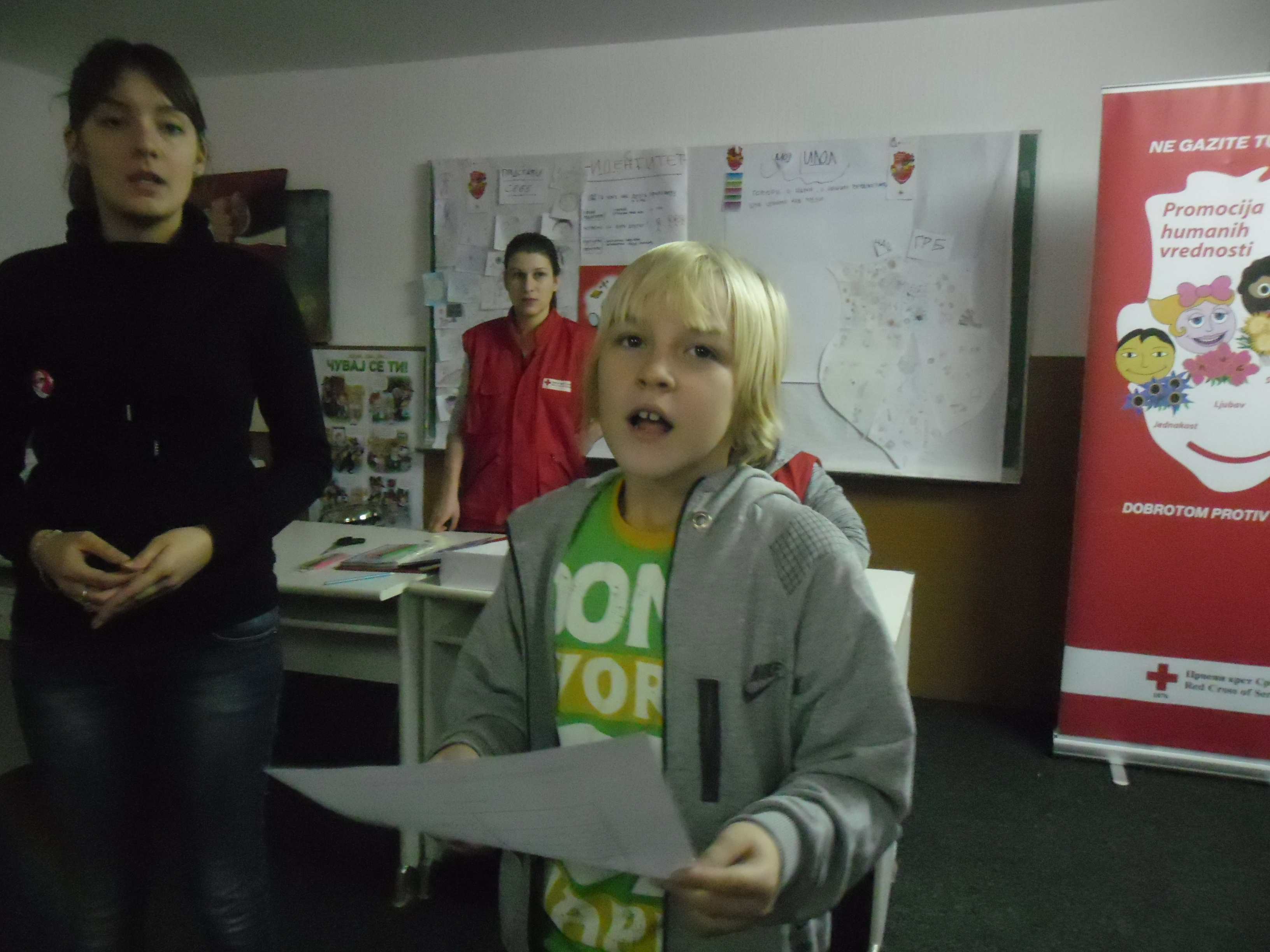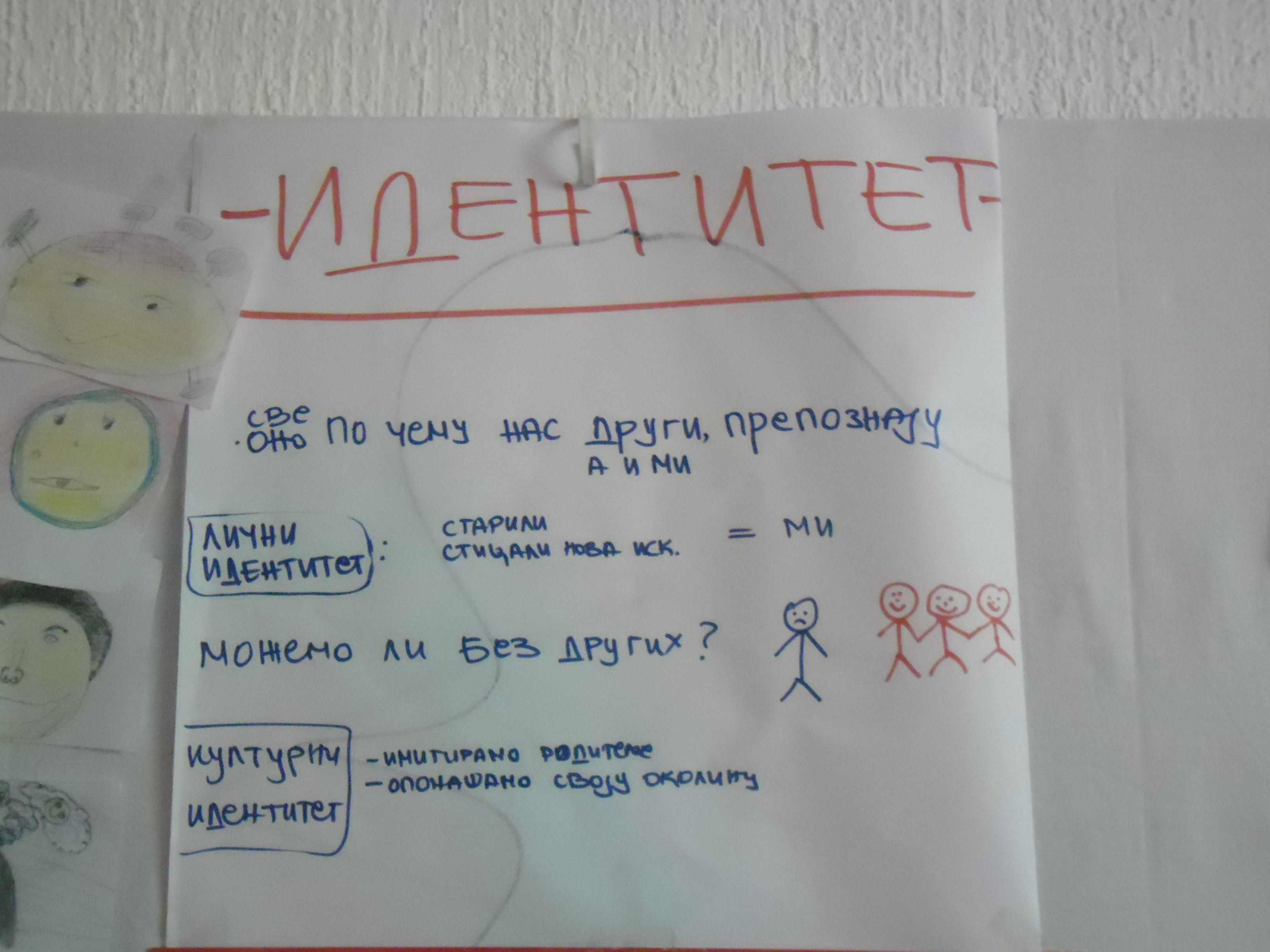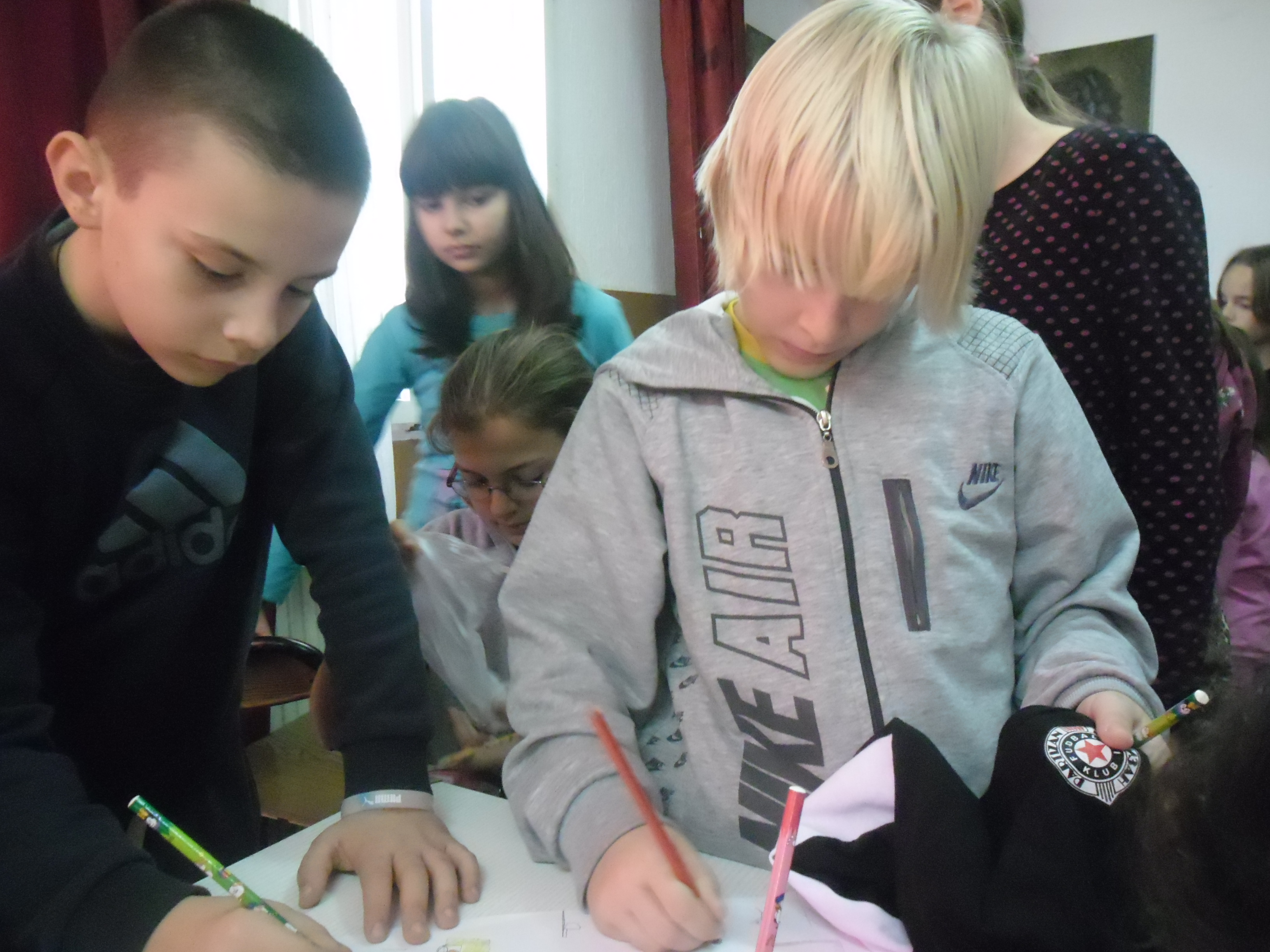 Današnja radionica je počela pod nazivom „Predstavi sebe“ i „Od igračke do plačke“ u kome je bio cilj osvešćivanje prava na privatnost, pravljenje razlika između onog što želimo i ne želimo o sebi da kažemo drugima i usvajanje stava da je „lični prostor“ potreba svakog pojedinca, da ga treba poštovati i dobiti dozvolu da se u „njega uđe“. Treća radionica je bila „U svetu postoji jedno arstvo“ u kome je cilj razvijanje svesti o potrebi poznavanja i poštovanja drugih kultura, razumevanje načina nastanka osobenosti određene kulture. Na kraju aktivnosti, radom po grupama, učenii su napravili Grb humanih vrednosti u kome su predstavili sve ono što je za njih bitno: boje, muzika, sport, snove…….