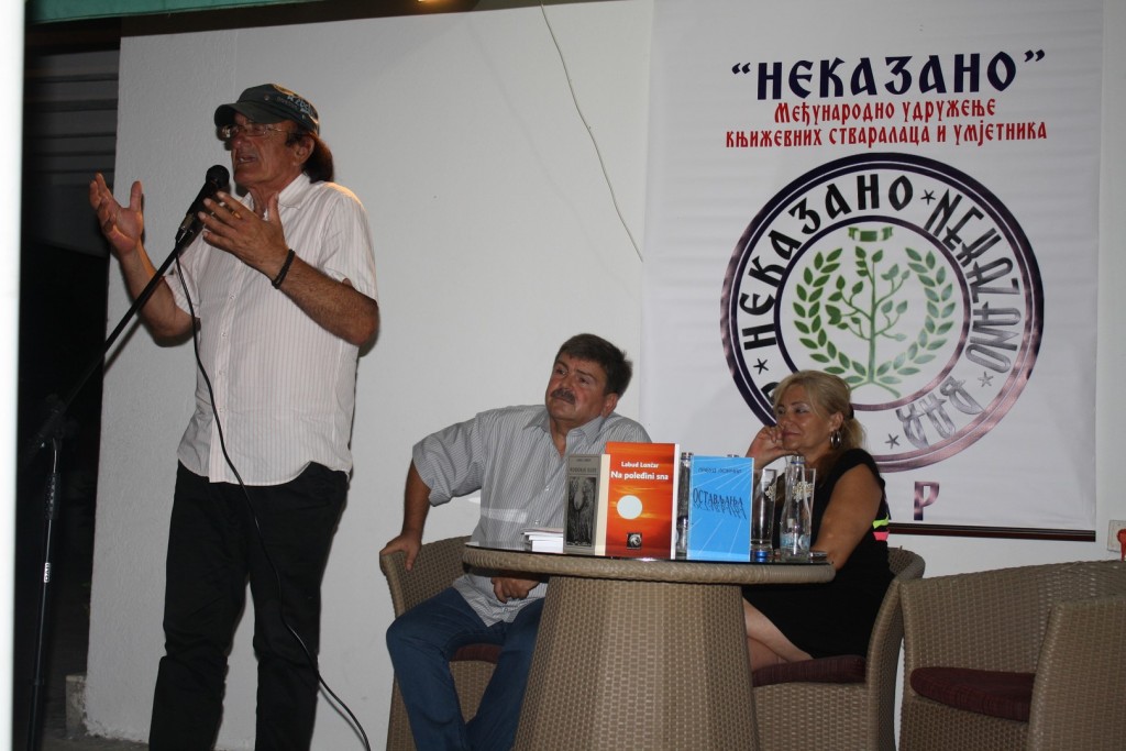 U prepunoj bašti restorana „Feniks“ a u organizaciji međunarodnog udruženja književnih stvaralaca i umjetnika iz Bara održana je promocija knjige poezije „Na poleđini sna“ autora Labuda N. Lončara.