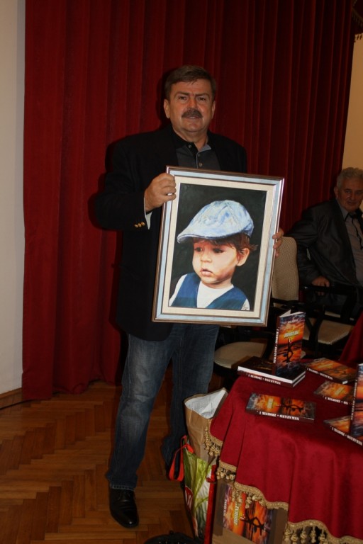 Pjesnikinja i slikarka Natalija Novaković spremila je iznenađenje i Labudu N. Lončaru uručila umjetničku sliku, svoj rad, sa portretom Labudovog unuka Vuka!