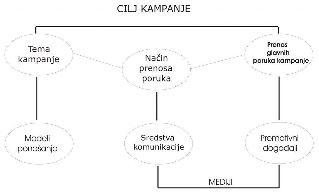 Strategija komunikacije predviđa izbor propagandnih sredstava, medija, promotivne akcije i PR gostovanja kako bi se komunikacijski proces kampanje zaokružio. Pomenute kombinacije, mogu biti različitog karaktera, obima, a to se prvenstveno određuje na temu, vrstu i karakter kampanje i u skladu sa ciljevima i odabranim ciljnim grupama. |