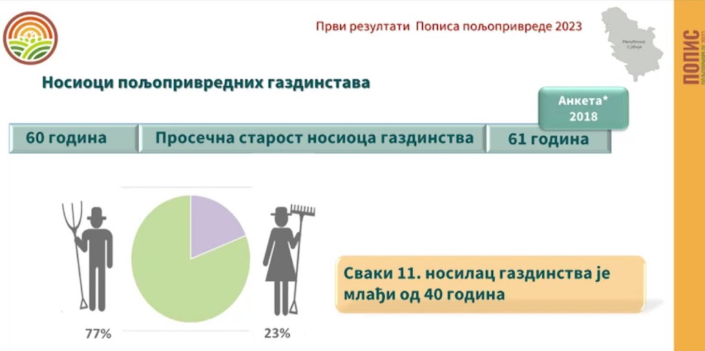 Takođe, podaci pokazuju i da je svaki 11. nosilac gazdinstava mlađi od 40 godina.