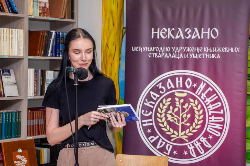 Lončar je potom kroz razgovor predstavio autorku, njene početke u pisanju, rad na knjizi i saradnju sa udruženjem „Nekazano“. Klaudija je izrazila zahvalnost i želju da i dalje piše, te postala član udruženja.