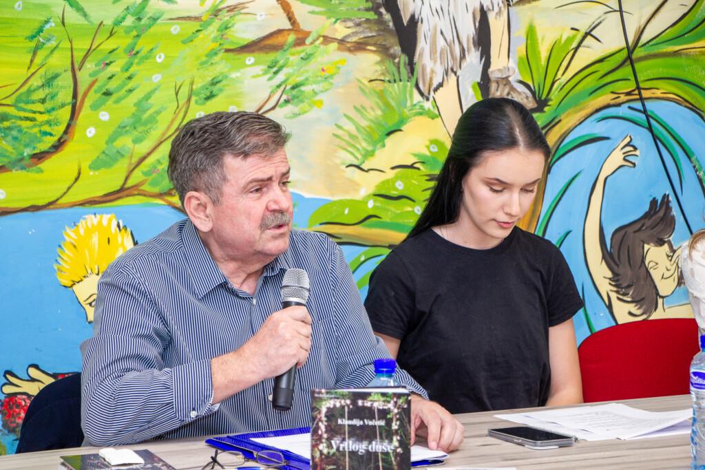 Ali ono što večeras čini dodatnu radost jeste promocija jednog posebnog prvijenca – knjige Vrtlog duše, književnog debija vaše koleginice, nastavnice ove škole, Klaudije Vučetić.