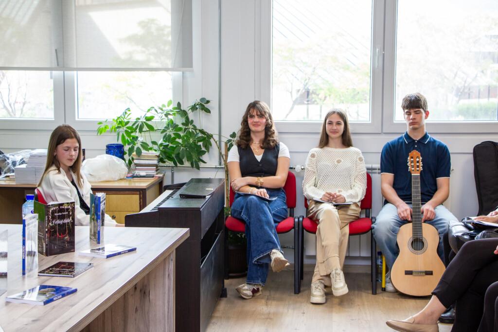 Učenice Jovana Roćenović i Varja Radević čitale su još priča iz knjige, a veče je dodatno uveličao muzički nastup Grgića Vanje na gitari.